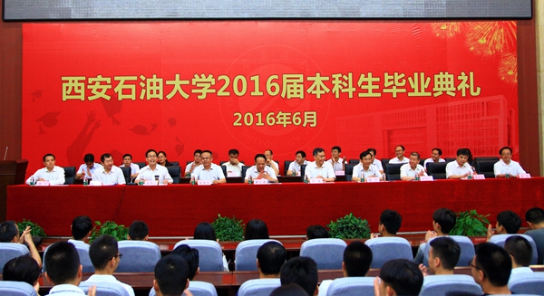 屈展校长在典礼上发表了热情洋溢的致辞。他对圆满完成学业的毕业生表示热烈祝贺和深切祝福,并对毕业生提出了四点希望和要求:一是希望同学们能够以德立身,以德修事。要在今后的人生道路上,修身立德,行稳致远,先忧后乐,推己及人,走好脚下的每一步路。二是希望同学们能够勤奋进取,勇于创新。要做到终身学习、终身提高、终身进取,不断充实、完善、提升自身,在平凡的岗位上做出不平凡的业绩。三是希望同学们能够心怀理想,勇担责任。要保持“四实”品质,心怀祖国,志存高远,敢于在最困难、最艰苦的地方大显身手,使自己成为社会的中坚力量。四是希望同学们能够常存感恩,乐于奉献。要把服务社会、奉献社会作为不懈追求的优良品德,主动将个人发展与祖国需要紧密结合,在石油工业和国家经济社会文化发展的需要之中展现自己的人生价值。
