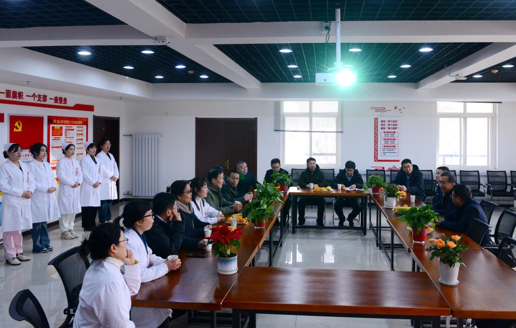 揭牌仪式后,与会领导及部门负责人参观了医院内部部门设置和运行情况,并在医院党建活动室进行了座谈交流。