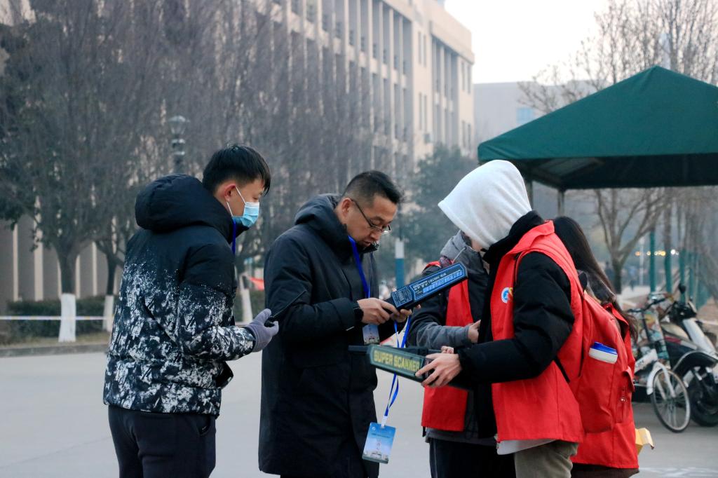 12月23日,校长王进富、副校长杨战社在考试现场调度组考工作,实地查看考生入场秩序、考务组织等情况,认真检查了各考场情况、监考教师履职、考生纪律等。检查过程中,看望慰问了考务人员、属地公安和医疗保障力量、学生志愿者,对大家的辛勤付出表示感谢。