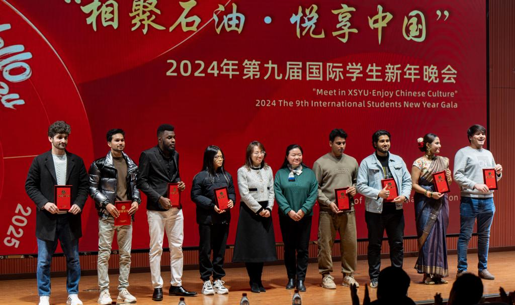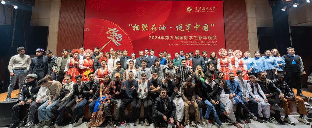 12月29日晚,由国际教育学院组织的“相聚石油・悦享中国”2024年第九届国际学生新年晚会在鄠邑校区弘石学术报告厅成功举办。校党委副书记张木、副校长程永清出席晚会,程永清致新年贺词。西安市公安局出入境管理局、鄠邑区沣京路派出所等嘉宾,beat365官网党政办公室(鄠邑校区管理办公室)、研究生工作部、教师工作部、计算机学院、国际教育学院等部门和院(系)负责人,以及200余名国际学生欢聚一堂,共赏国际文化盛宴。