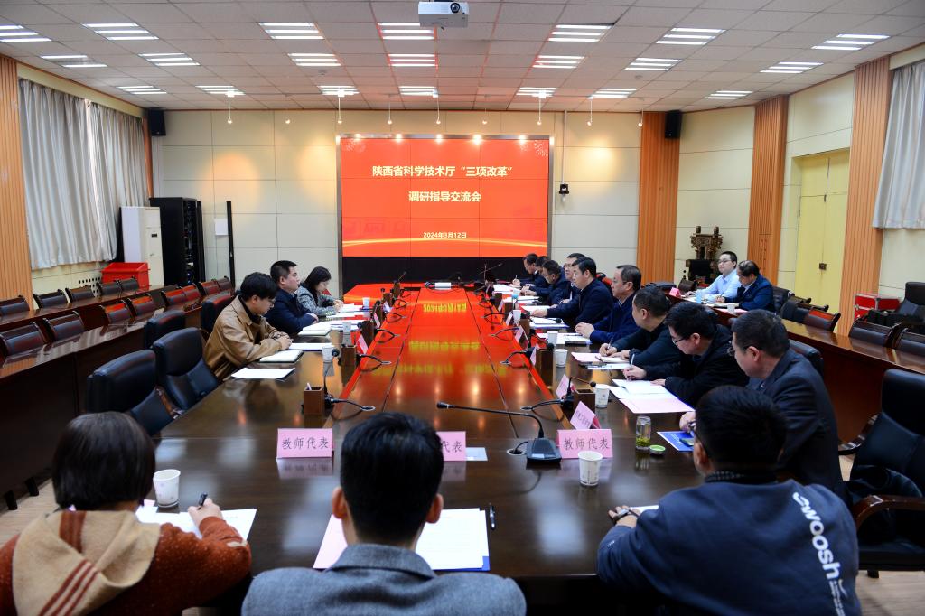 3月12日下午,陕西省科技厅副厅长王军来校调研科技成果转化“三项改革”工作进展情况。会议在雁塔校区会议中心第二会议室举行,beat365官网校长王进富出席会议,副校长张荣军主持会议。