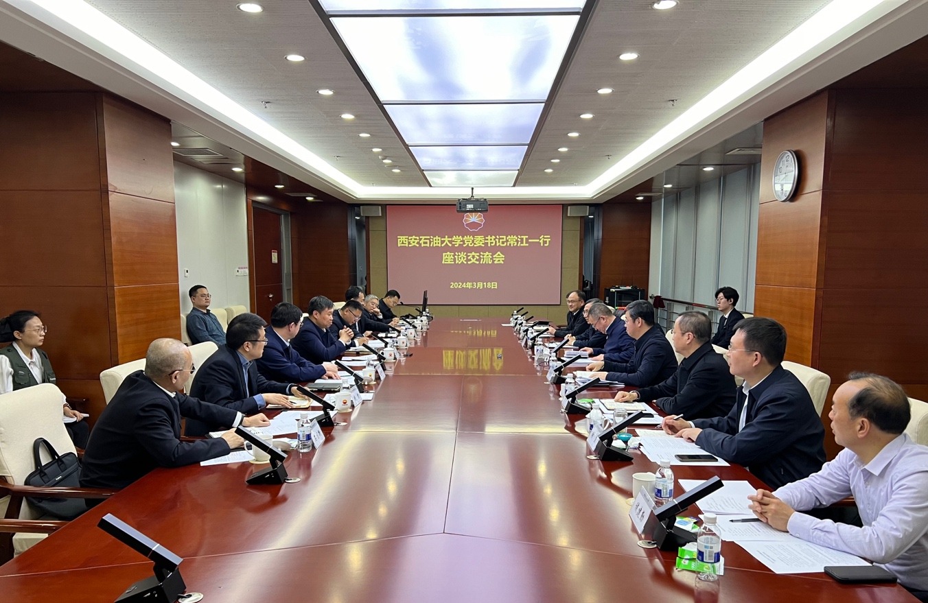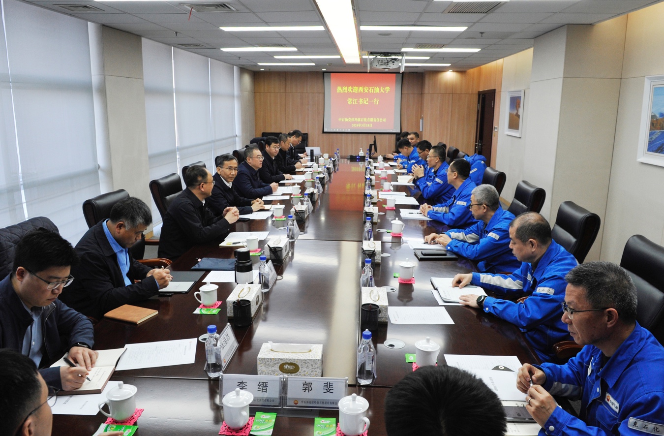 现场参观考察后,常江、王进富一行来到中国石油新疆油田公司总部,与公司执行董事、党委书记方庆,副总经理、总地质师宋永,副总经理刘洪洲等座谈交流。常江指出,新疆油田公司近年来在油气勘探上连获突破,油气产量再创新高,绿色低碳转型加快推进,公司发展实力有目共睹。希望双方建立更加紧密的合作关系,围绕公司9大专项、12个重点项目开展科研攻关,为公司技术体系构建提供有力的人才和智力支撑,作出西石大贡献。王进富表示,非常感谢公司对学校学生的关心和支持,公司和学校都因油而生,这次访企拓岗和现场调研更是闻了油香、沾了油味,期待双方开展更深层次、更大规模的合作,校企共同结油缘、创未来,助力公司早日实现现代化综合性能源公司的目标。方庆谈到,非常感谢学校送教育到行业,一部油田的成长史发展史就是石油高校的成长史发展史,校企双方在教育科技人才领域的合作空间广阔,希望开展广泛交流、优势对接、时效合作,在推动创新联合体、柔性人才培养等方面取得积极进展。公司科技信息部经理王建介绍了公司发展情况,并就与学校在油气增储上产、绿色低碳转型等方面的合作进行了沟通交流。