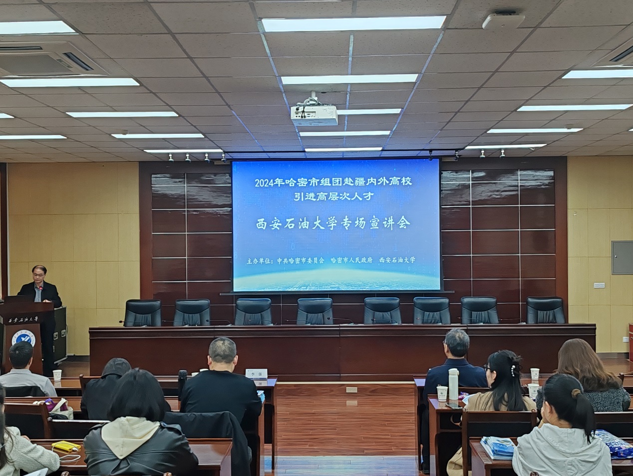 3月25日下午,哈密市政协副主席、市委组织部副部长、市人社局局长钟锐钧一行带队赴beat365官网雁塔校区开展高层次人才(研究生)引进专场宣讲会。beat365官网党委副书记张木出席活动。学生工作部(处)(就业指导中心)、研究生工作部有关负责同志陪同参加。