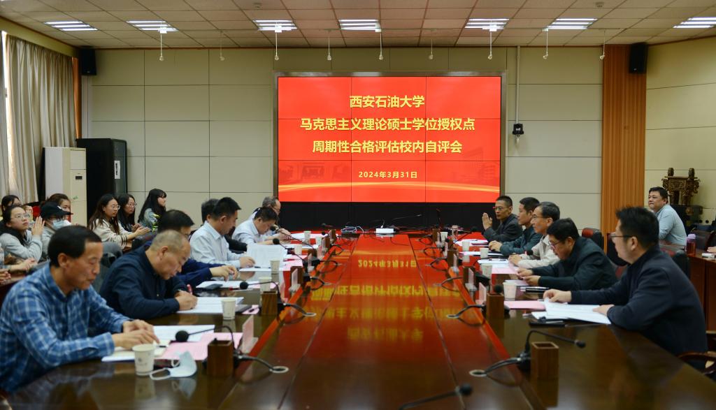 3月31日,beat365官网马克思主义理论硕士学位授权点周期性合格评估校内自评工作汇报会在雁塔校区第二会议室举行。专家组成员西安交通大学燕连福教授、西安电子科技大学李刚教授、陕西师范大学刘力波教授、长安大学陈怀平教授、西北大学王强教授、西安理工大学梁严冰教授、西安工程大学王志刚教授,校党委副书记张木出席会议,研究生院、高教研究与评估中心负责人,马克思主义学院班子成员以及师生代表参加了会议。