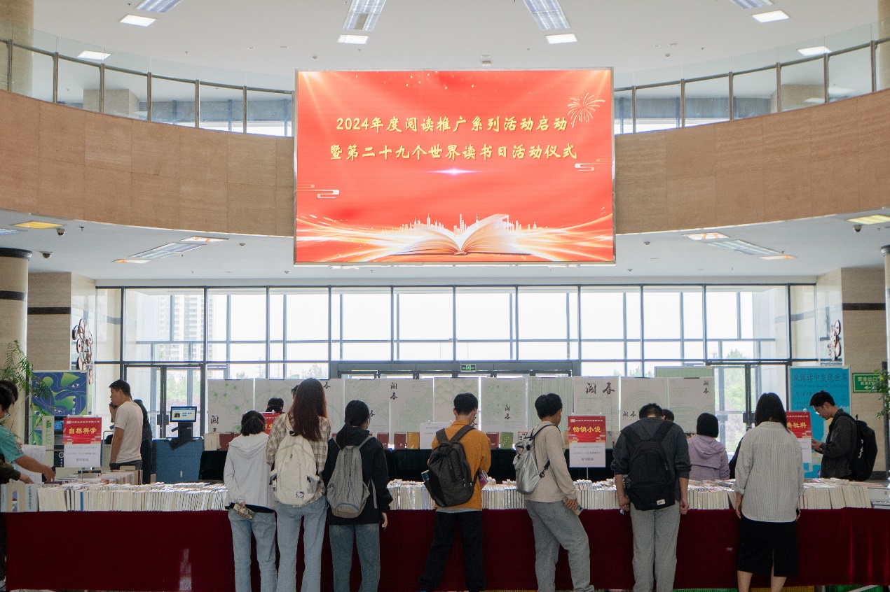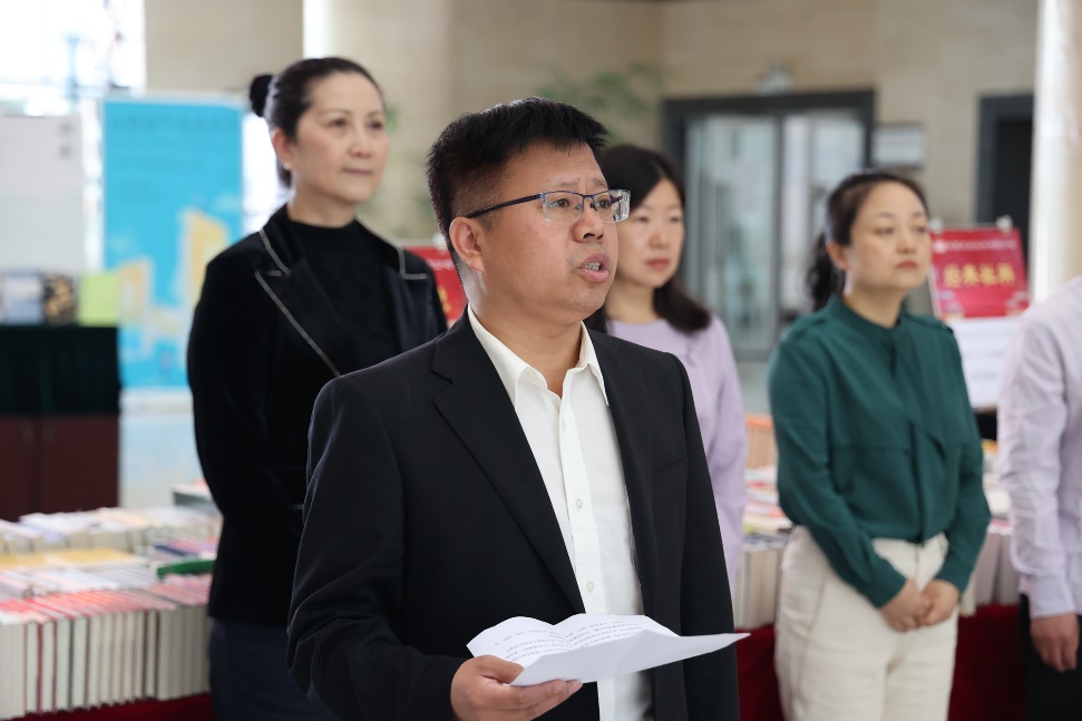 为深入推进全民阅读,营造良好阅读氛围,促进beat365官网书香校园建设,4月22日上午,2024年阅读推广活动暨第29个世界读书日系列活动启动仪式在鄠邑校区图书馆大厅举行。副校长张骁勇出席活动。图书馆负责人、各部(室)主任、鄠邑校区馆员和学生代表参加了启动仪式。仪式由图书馆馆长蒋华义主持。