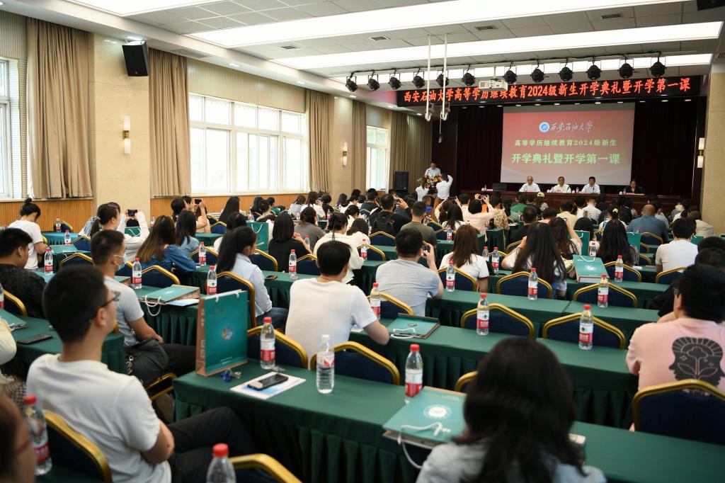 开学典礼在庄严的国歌声中拉开帷幕。继续教育学院党总支书记耿岭代表学校对2024级新生表示热烈欢迎和诚挚祝贺!并简要介绍了学校的办学特色、发展成就以及学校在石油石化行业的卓越声誉。他对新生提出了四点希望和要求:一是勤奋学习,勇于实践,贯彻终身学习理念;二是求真务实,开拓创新,成为顺应时代发展的创新人才;三是严于律己,团结守纪,遵守校规校纪,建立良好学习风气;四是处理好工学矛盾,合理安排工作、学习和生活。