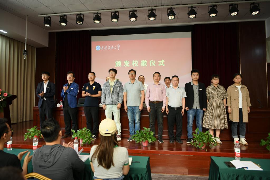 随后,领导和老师们为新生代表颁发并佩戴校徽。校徽既是西石大学子的象征,也提醒同学们肩负着传承和发扬学校优良传统的使命,以校风校训为行动指南,不断追求卓越,勇于创新。
