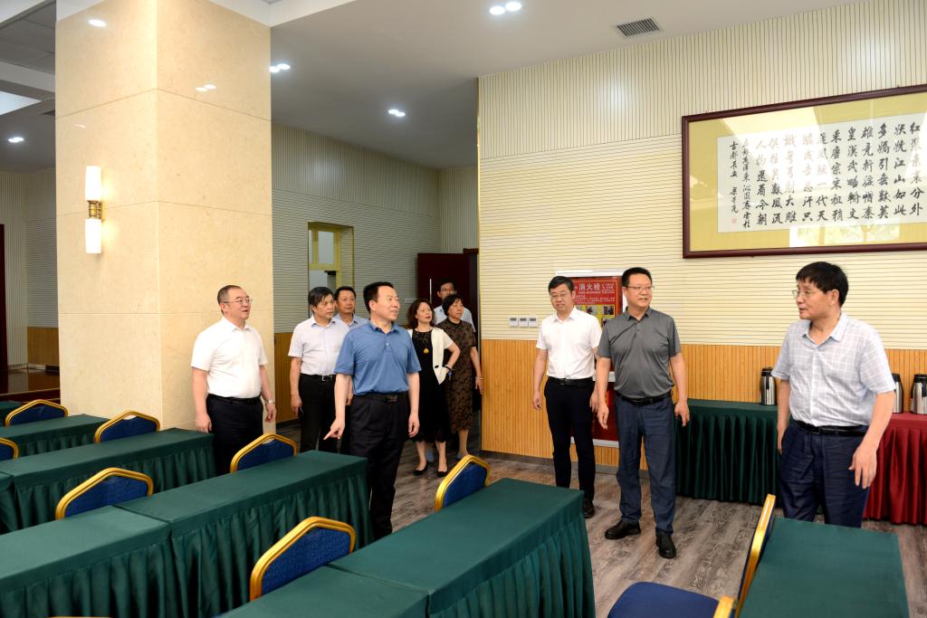 beat365官网党委书记常江、校长王进富、副校长杨战社会见了陕西工商管理硕士学院专家一行,并陪同专家考察了学校的教学设施和硬件条件。
