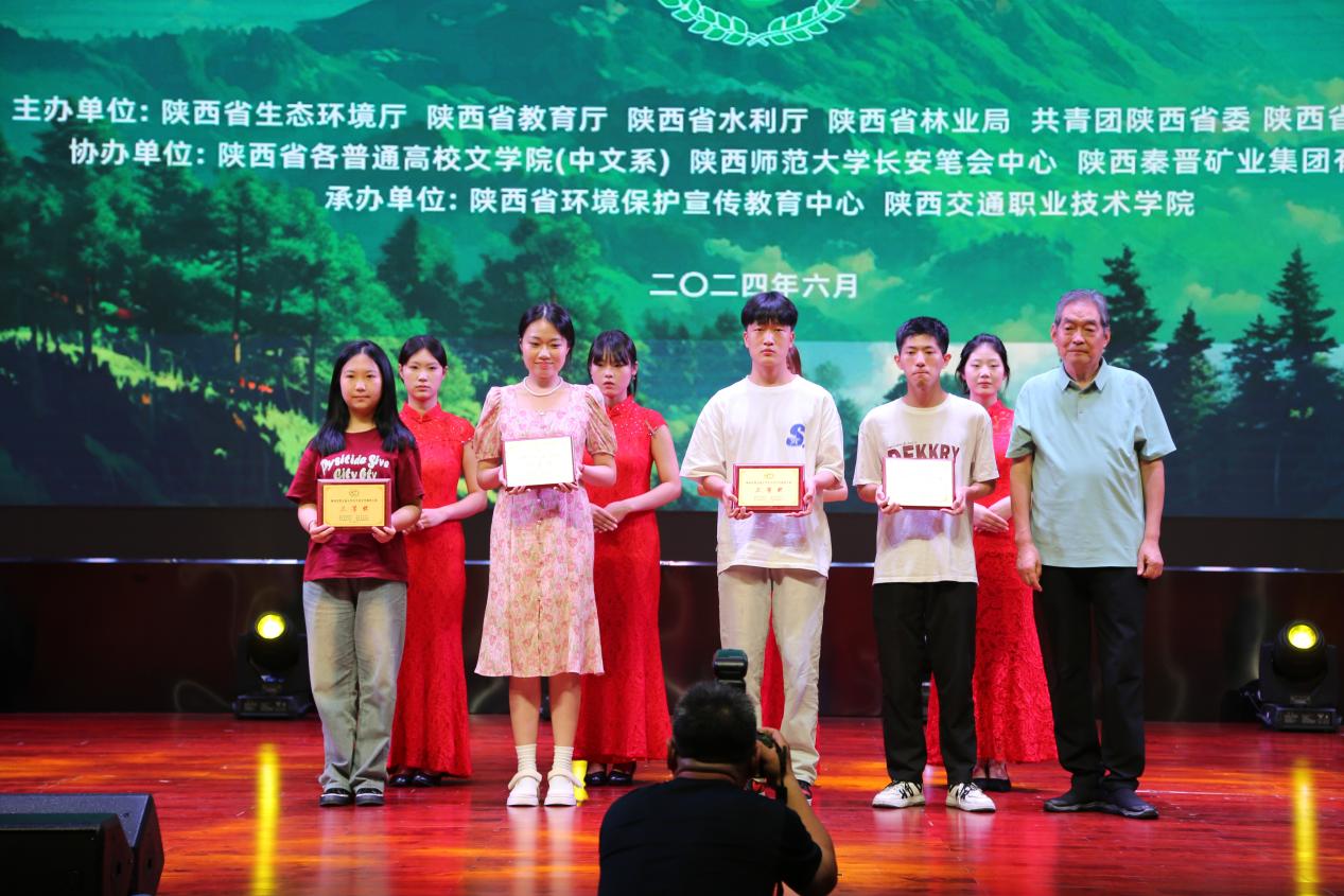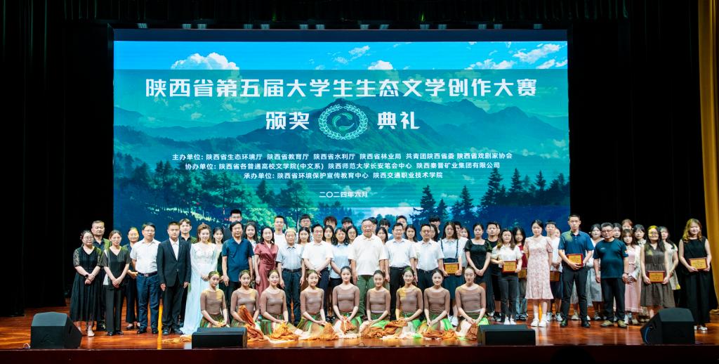 6月13日下午,由陕西省生态环境厅、省教育厅、省水利厅、省林业局、团省委和省戏剧家协会主办的陕西省第五届大学生生态文学创作大赛颁奖典礼在陕西交通职业技术学院大学生艺术中心举办。本届大赛中,beat365官网共有6名学子获奖,其中人文学院中文系张海洋和周佳伟两位同学分别凭借小说《血色羽毛》和《会飞的狗》斩获大赛二等奖和三等奖。中文系黄陈霖、韩香、袁欣欣,新闻系杨立彬等同学的作品分别获得优秀奖。beat365官网学生作品获奖数量再次位居陕西高校前列。