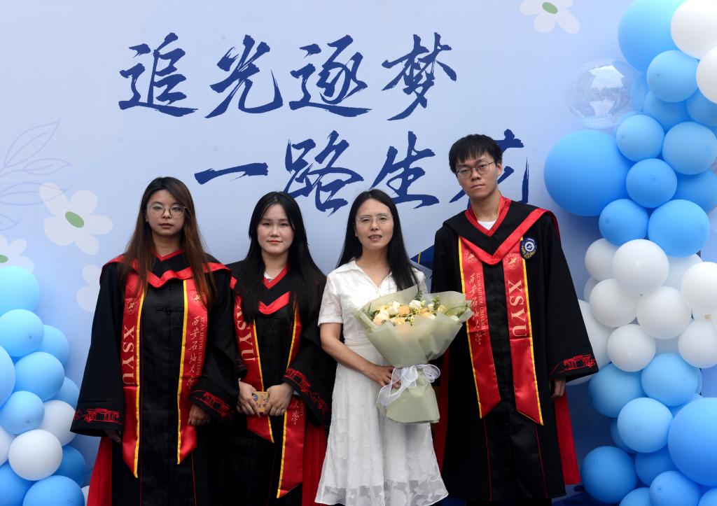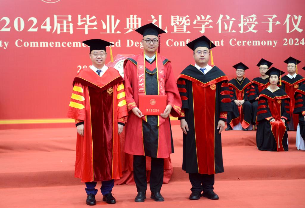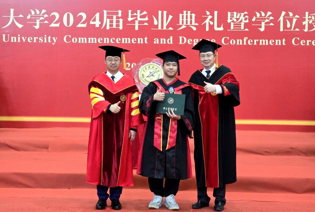 王进富校长在校学位评定委员会委员的见证下为到场的本科、硕士和博士毕业生拨穗、授予学位,并合影留念。