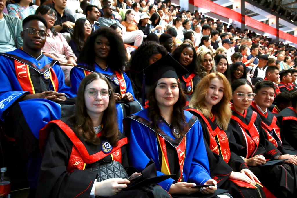 地球科学与工程学院地质2002班彭韵力、经济管理学院区域经济学21级白又竹、石油工程学院吉尔吉斯斯坦毕业生陈杰克分别代表毕业生和留学生发言。