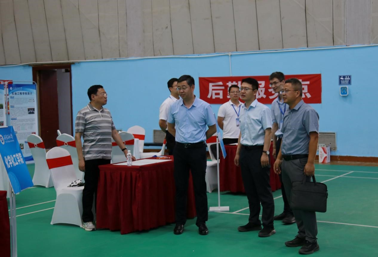 6月24日至26日,学校宣传部、教务处、科研处、研究生院、马克思主义学院以及各院(系)专家教授与招生志愿者共同参加第十二届陕西教育博览会暨招生咨询会。学校展台搭建以石油红为主色调,突出石油石化特色,中心位置石油树象征石油喷薄如飞瀑涌泉,发展的动力源源不断,精心陈列原油、岩心、矿物标本、连续油管作业车模型,展示学校流体动力式双重声波防蜡装置等5项科技成果及研究生科技创新成果。省委教育工委副书记、教育厅厅长王树声在校领导常江、张君涛的陪同下莅临beat365官网展位视察工作。