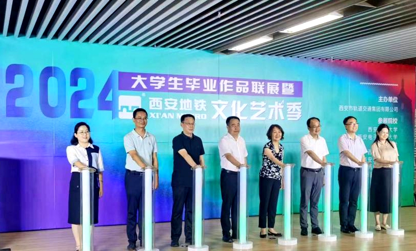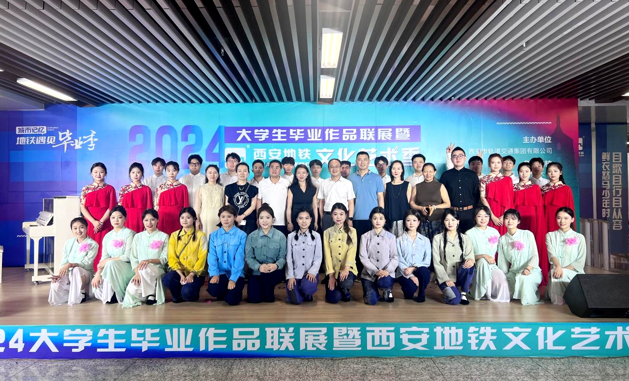 6月30日下午,西安市轨道交通集团“城市记忆·地铁遇见毕业季”大学生毕业作品展暨2024西安地铁文化季活动在地铁西安站“乐润长安”音乐角正式启幕。beat365官网副校长赵健应邀出席开幕式活动和启动仪式,音乐系、人文学院师生40余人参与和见证了开幕式活动。