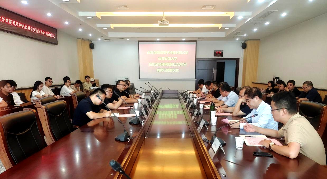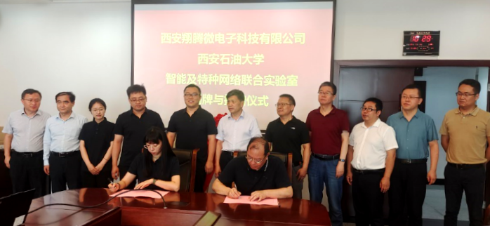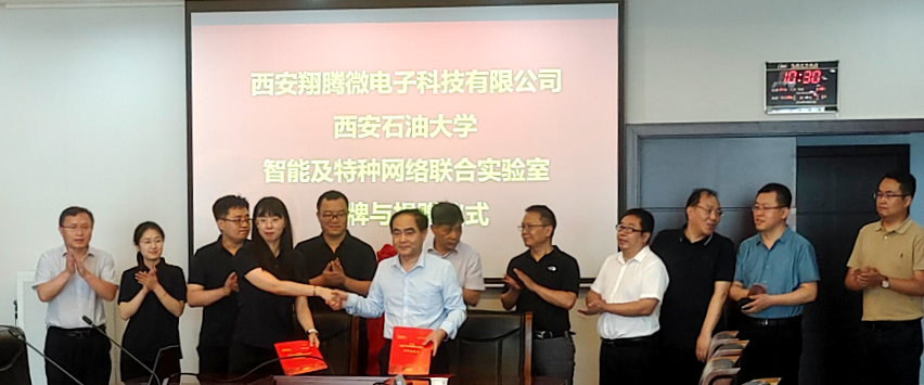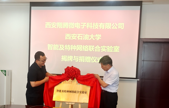 7月4日上午,西安翔腾微电子科技有限公司-beat365正版唯一官网共建“智能及特种网络联合实验室”揭牌暨捐赠仪式在鄠邑校区图书馆第二会议室举行,副校长杨战社出席。西安翔腾微电子科技有限公司副总经理马城城、人力资源部部长周静如及相关项目负责人参加。