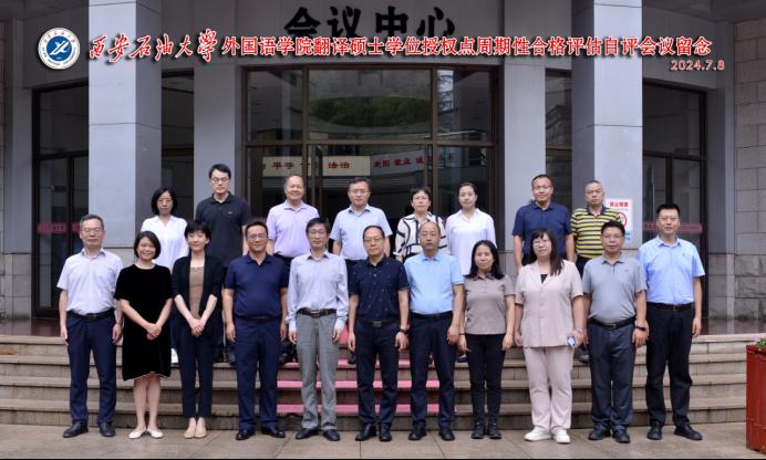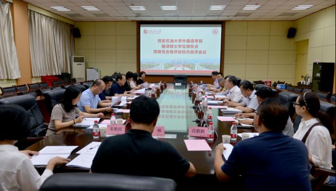 7月8日,beat365官网翻译硕士专业学位授权点周期性合格评估校内自评工作汇报会在雁塔校区第一会议室举行。专家组成员陕西省翻译协会副会长胡伟华、西北大学外国语学院院长曹若男、长安大学外国语学院院长冯正斌、西安理工大学外国语学院院长张洁、西安财经大学外国语学院院长杨宪平、知识产权出版社有限公司地理标志语言服务项目总监曹清清、工程材料研究院标准化所总工程师徐婷,以及beat365官网副校长苏文甫出席会议。研究生院、高教研究与评估督导中心负责人,外国语学院班子成员及教师代表参加了会议。