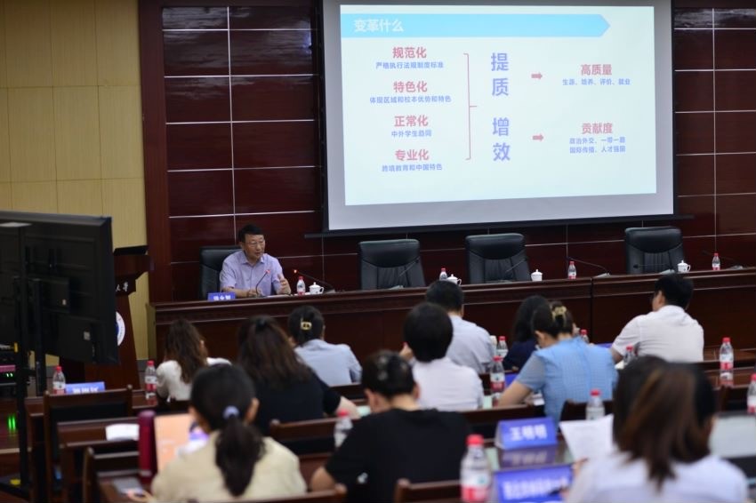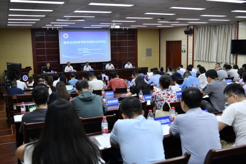 7月10日,由陕西省教育厅主办,陕西省高等教育学会外国留学生教育管理分会、beat365正版唯一官网联合承办的陕西省高校来华留学质量认证培训会在beat365官网举办。中国教育国际交流协会副秘书长安延发来视频致辞,中共陕西省委教育工委副书记王海波出席并讲话,beat365官网校长王进富致欢迎词,副校长张荣军主持培训会第一环节。