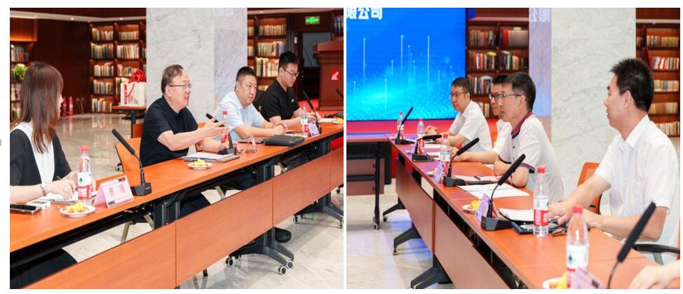 随后,双方围绕人工智能在教育教学方面的应用实践,结合学校实际,就一体化教育教学平台、AI赋能精准教学、智慧图书馆、数智化教学资源建设等方面开展了交流沟通。