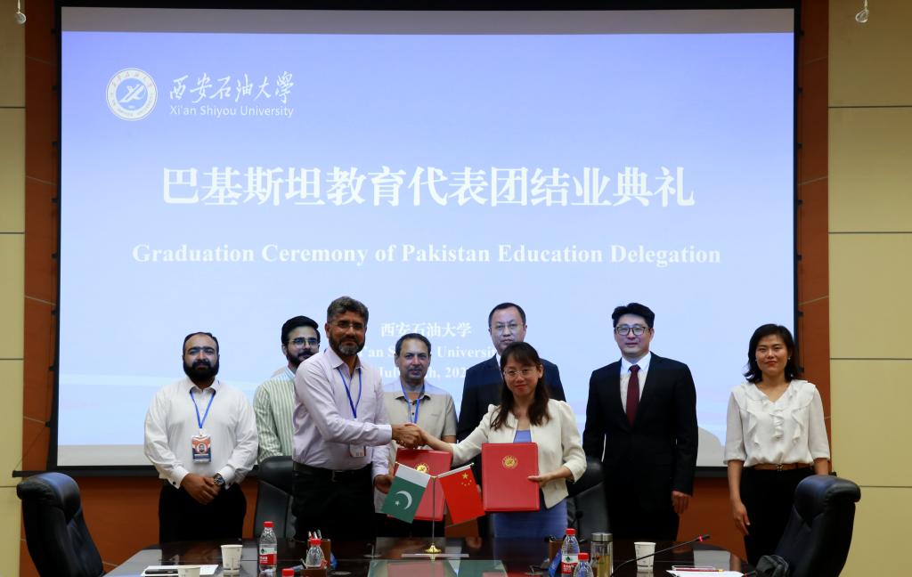 结业典礼上,学校与巴基斯坦古杰兰瓦拉教育联盟签署教育合作备忘录。国际合作与交流处、国际教育学院负责人与巴方代表现场签约。