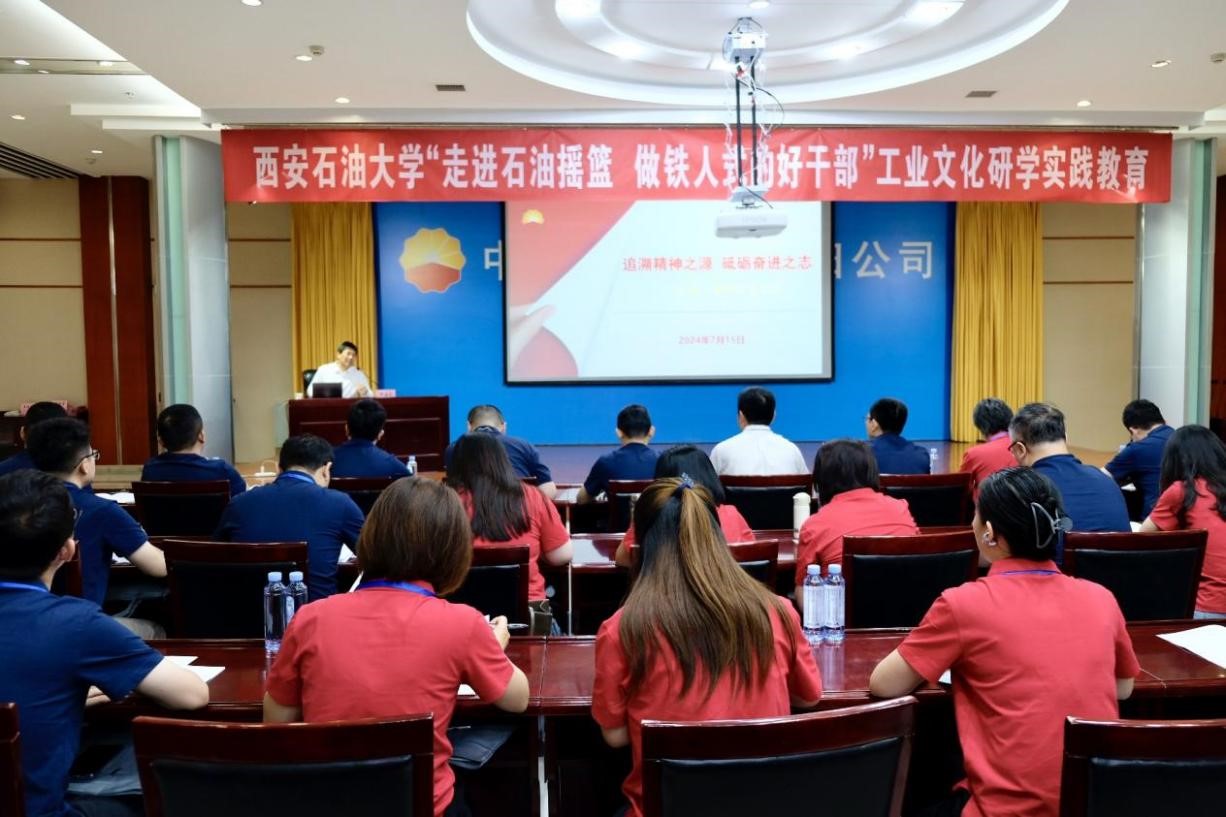 开班仪式前,玉门油田党委宣传部副部长邱建民以“追溯精神之源,砥砺奋进之志——让铁人精神永放光芒”为题,围绕铁人精神的时代内涵、社会影响、重要启示、实践路径四个部分,通过大量的图片、音频、视频等历史资料,生动讲述了铁人王进喜的成长历程和铁人精神的形成过程与时代价值,形象再现了老一辈石油人为摆脱国家贫油落后的帽子和爱国、创业、求实、奉献的精神风貌。开班仪式后,培训班全体学员深入玉门油田展览馆、岩心库和国家级高技能人才实训基地,全面了解了石油摇篮的发展历史,深入学习了玉门石油人艰苦奋斗、无私奉献、自强不息的精神内涵,深刻体验了玉门油田丰富的安全培训和实训资源,认真听取了科研人员对玉门油田部分区块岩心的分析,加深了培训学员对石油地质的认识。