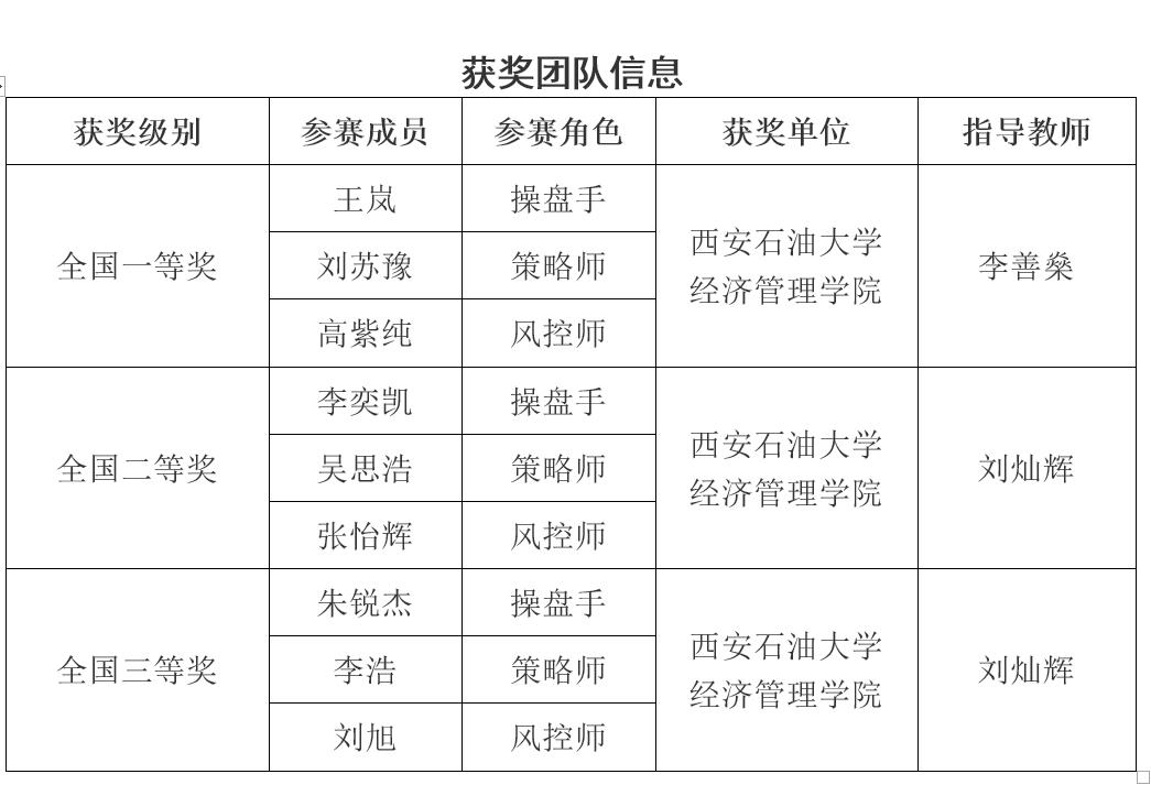 本次获奖是beat365官网继2021年首次参加该项赛事以来获得的最好成绩,全国一等奖获得者来自经济管理学院金融专业特许金融分析师(CFA)班,体现了beat365官网金融专业团结奋进的精神风貌和创新改革的发展成效。经济管理学院将继续鼓励和指导学生参加各类学科竞赛,围绕以赛促学、以赛促教、以赛促创的要求,将学科竞赛融入培养环节,积极拓展第二课堂,更加重视学生自主创新创业综合能力的培养,更好地推动人才培养质量提升。