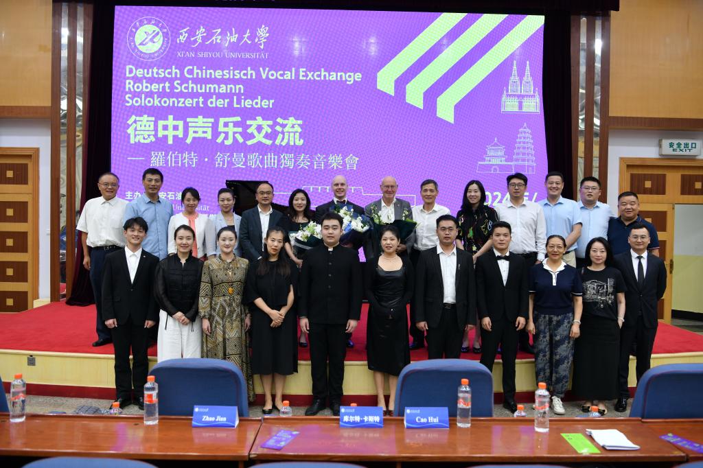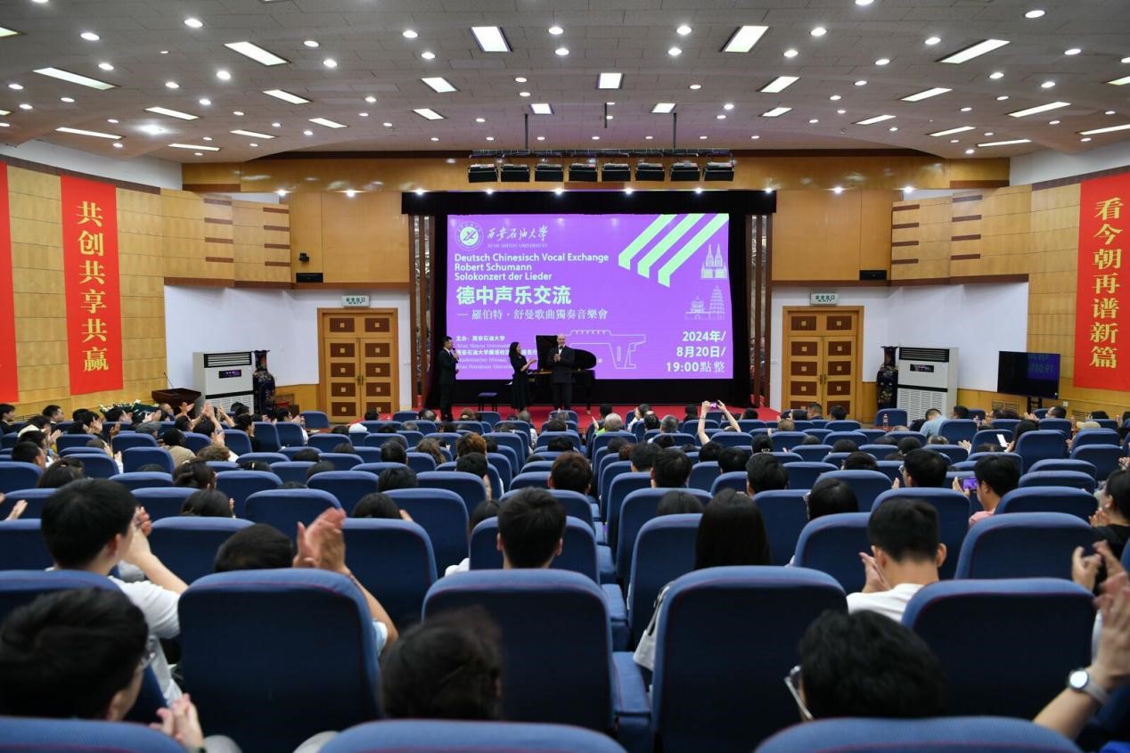 8月20日晚,由beat365官网主办的德中声乐交流——罗伯特∙舒曼艺术歌曲专场音乐会在雁塔校区学术报告厅成功举办。德国美茵茨-威斯巴登德中友协理事会主席、德中友协联合会前主席库尔特∙卡斯特(Kurt Karst)先生,陕西省友协专职副会长曹辉,beat365官网副校长赵健出席并观看声乐会。陕西省友协、陕西省侨联、中共西安市委统战部等部门有关人员,在校教职工、家属及暑期留校中外学生等300余人现场观看。本次活动由国际合作与交流处积极对接和申报,与音乐系联合承办。