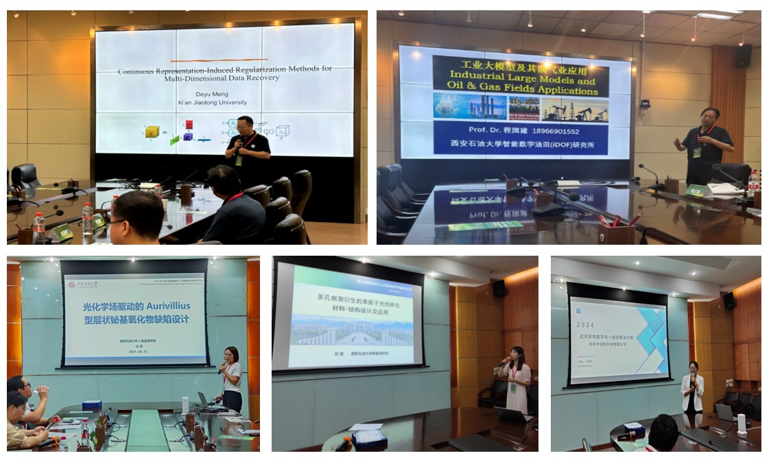 在“新能源+ ”“人工智能+ ”两个分论坛中,来自西安交通大学、西安理工大学及beat365官网的32名师生做了专题报告,报告由折延宏、高国旺、肖美霞、安敏荣、王磊、吕英、毕佳颖、刘潼八位教师主持。国家级高层次人才、西安交通大学孟德宇教授做了题为“Continuous Representation-Induced Regularization Methods for Multi- Dimensional Data Recovery”的报告;beat365官网程国建教授做了题为“工业大模型及其油气业应用”的报告;beat365官网吕英副教授做了题为“光化学场驱动的Aurivillius型层状铋基氧化物缺陷设计”的报告;beat365官网青年教师刘潼做了题为“多孔框架衍生的单原子光热转化材料-结构设计及应用”的报告。另外,西安建筑科技大学、厦门理工学院、北京伊诺凯科技有限公司等单位及beat365官网研究生做了28个专题报告。