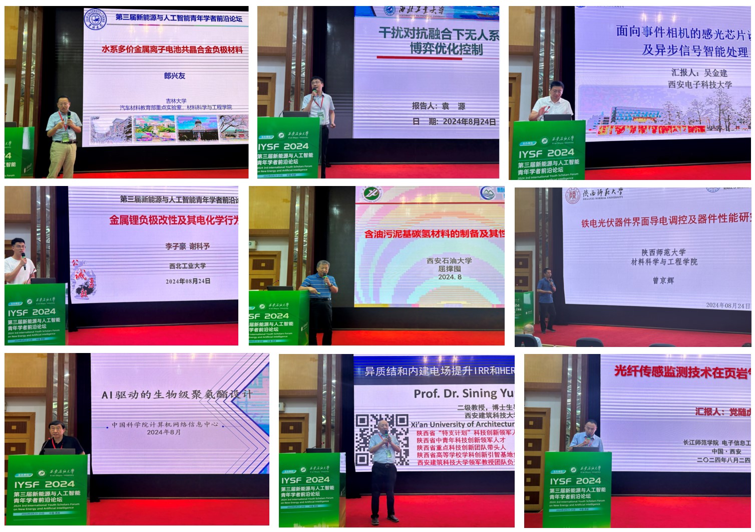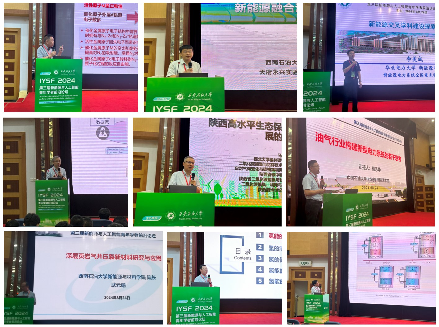 国家杰青、长江学者、吉林大学蒋青教授做了题为“电化学合成氨钼基催化材料的设计与制备”的报告;国家杰青、广东省人民医院主任医师刘再毅教授做了题为“肿瘤多模态影像AI研究进展”的报告;国家杰青、长江学者、西南石油大学副校长周莹教授做了题为“新能源融合油气资源开发利用”的报告;长江学者、国家万人计划科技领军人才、华北电力大学新能源学院院长李美成教授做了题为“新能源交叉学科建设探索与实践”的报告;国家高层次人才、西北大学碳中和学院首席科学家马劲风教授做了题为“陕西高水平生态保护与绿色高质量发展的路径”的报告;中国石油大学(华东)新能源学院副院长仉志华教授做了题为“油气行业构建新型电力系统的若干思考”的报告;西南石油大学新能源与材料学院院长武元鹏做了题为“油气行业高校新能源学科专业发展探索与实践”的报告;中国石油大学(北京)杨帆教授做了题为“氢能产业发展现状与展望”的报告;国家百千万人才工程入选专家、西安理工大学李喜飞教授做了题为“锂离子电池三元正极材料界面改性的研究”的报告;国家万人计划科技创新领军人才、长江学者、国家优青、吉林大学郎兴友教授做了题为“水系多价金属离子电池共晶合金负极材料”的报告;国家优青、西北工业大学袁源教授做了题为“干扰对抗融合下无人系统博弈优化控制”的报告;国家优青、西安电子科技大学吴金建教授做了题为“向事件相机的感光芯片设计及异步信号智能处理”的报告;国家级高层次人才、西北工业大学谢科予教授做了题为“金属锂负极改性及其电化学行为调控”的报告;陕西师范大学材料科学与工程学院院长曾京辉教授做了题为“铁电光伏器件界面导电调控及器件性能研究”的报告;国家百千万人才工程入选专家、beat365正版唯一官网屈撑囤教授做了题为“含油污泥基碳氢材料的制备及其性能研究”的报告;中科院百人计划(A类)杨小渝教授做了题为“智算驱动的生物基聚氨酯设计”的报告;陕西省“特支计划”科技创新领军人才、西安建筑科技大学云斯宁教授做了题为“异质结和内建电场提升太阳电池和制氢催化剂的性能”的报告;长江师范学院电子信息工程学院院长党随虎教授做了题为“光纤传感监测技术在页岩气开发中的应用”的报告。