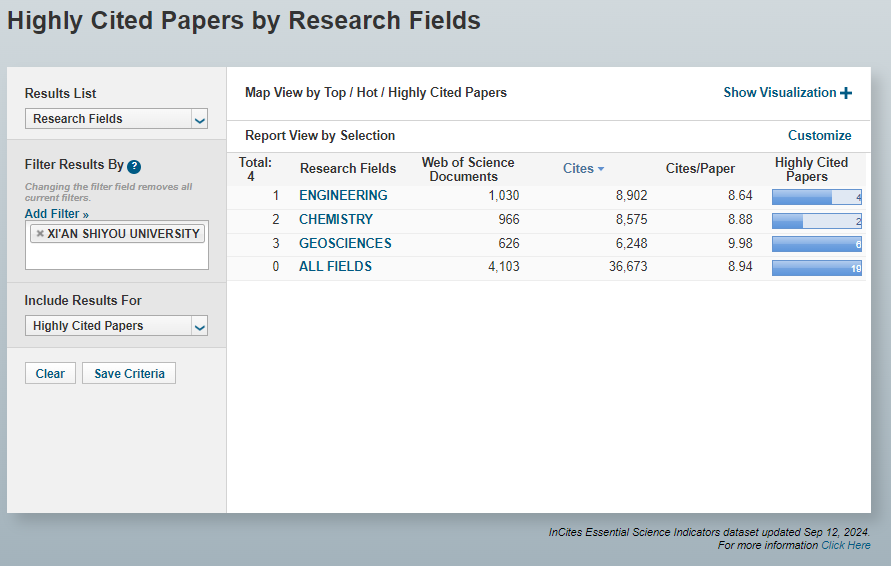 科睿唯安2024年9月公布的《基本科学指标数据库》(Essential Science Indicators,简称ESI)最新统计数据显示,beat365官网地球科学学科进入ESI全球排名前1%,实现重要突破。至此,beat365官网已有工程学、化学、地球科学3个学科进入ESI全球排名前1%。