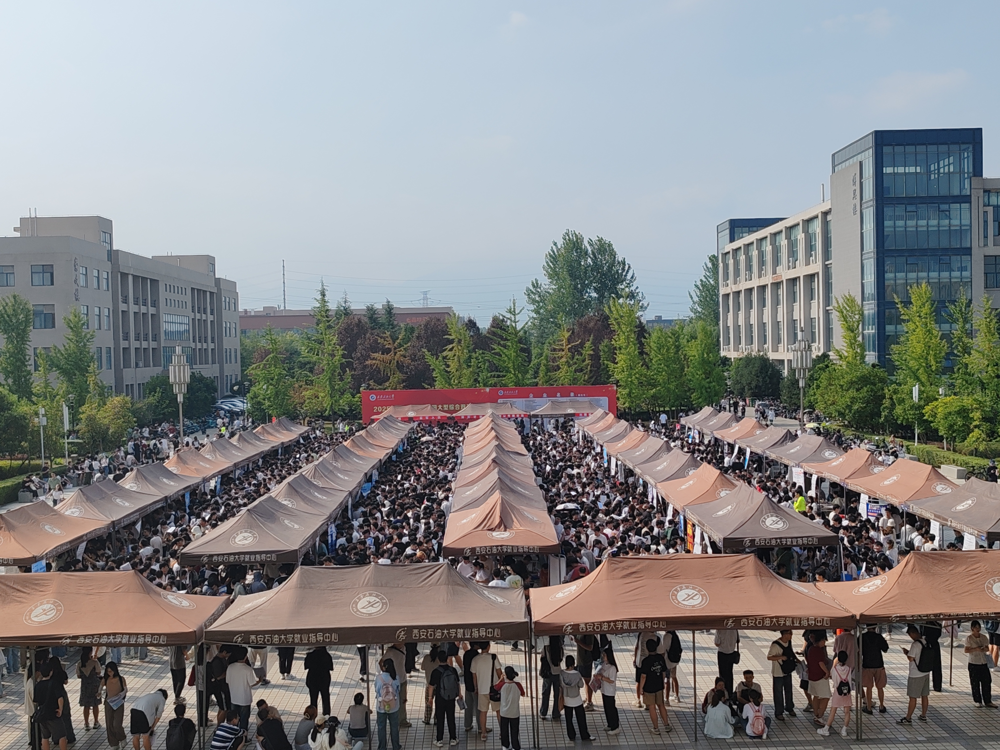 9月13日上午,beat365官网在鄠邑校区图书馆南广场举办首场2025届毕业生秋季校园招聘综合双选会。副校长赵健深入招聘会现场调研指导工作。学生工作部(处)(就业创业指导中心)相关负责同志,各院(系)主管学生工作主要负责人陪同调研。来自全国中国石油集团测井有限公司、中国石油集团川庆钻探工程有限公司、中国石油天然气第六建设有限公司、甘肃煤田地质局综合普查队、中铁二十一局集团第一工程有限公司、青海省化工设计研究院有限公司兰州分公司等128家单位进校招聘,与学校4000余名毕业生“双向奔赴”,面对面、零距离共享就业盛会。