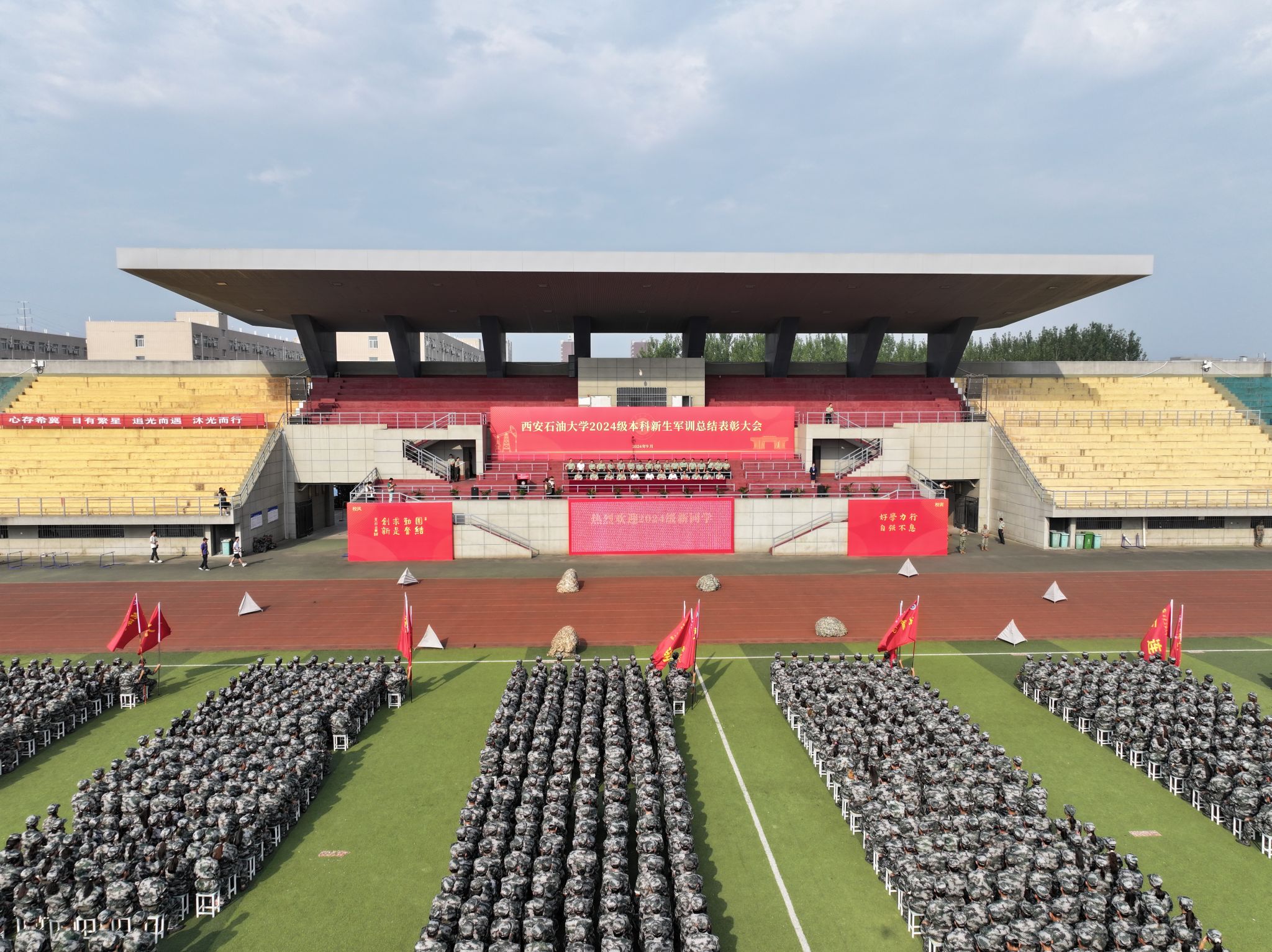 9月15日上午,beat365官网2024级本科新生军训总结表彰大会在鄠邑校区东田径场举行。校长王进富、副校长张君涛、副校长赵健,中国人民解放军某部王林上校出席大会。军训领导小组成员单位负责人,全体参训干部、全体教官及2024级全体本科生共4800余人参加大会。大会由军训旅政委、武装部部长王亮主持。