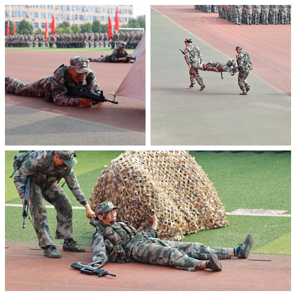 “实战运用、队列行进、养成动作、格斗术、刺杀操”五个环节的军训成果一一展示在大家面前。在整齐的动作和嘹亮的口号中,同学们用昂扬向上的姿态展示了14天的军训训练成果,展现西石大学子自强自信、团结拼搏的精神风貌。