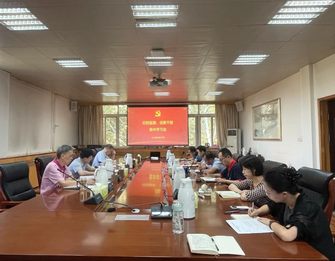 9月18日上午,纪检巡察干部2024年第17次集中学习会在雁塔校区行政楼五楼会议室召开,纪检监察机构、党委巡察工作办公室全体干部参加。会议由校党委副书记、纪委书记、监察专员王辉强主持。