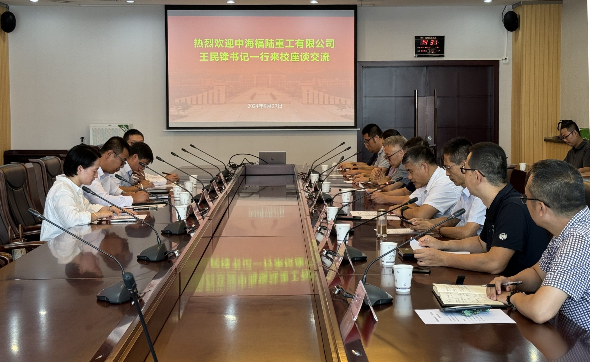9月27日下午,中海福陆重工有限公司(以下简称“公司”)党委书记王民锋(beat365官网过程装备与控制工程2006届校友)一行来校座谈交流。beat365官网总会计师樊晓民出席会议并讲话。