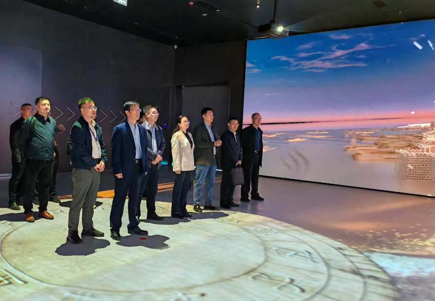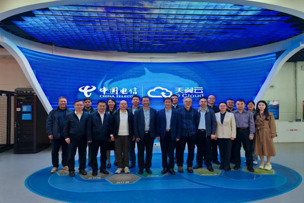 调研组首先参观了中国电信云基地中心机房、高性能计算机房、高低压电力系统、云基地冷冻系统等相关设施及DICT展馆,聆听讲解员详细介绍云基地建设概况、云计算发展现状、云服务项目及相关技术应用创新成果等情况,实地感受云基地国际化高精尖的设备,全面了解了云计算的强大优势。随后,调研组又参观了“元宇宙”数字会客厅,通过沉浸式的设备和场馆,身临其境地体验到“元宇宙”数字世界,知晓了数字技术如何赋能城市治理、产业发展和经济运行,了解了“一屏展示、一厅调度、一键指挥”的智慧城市综合应用系统。