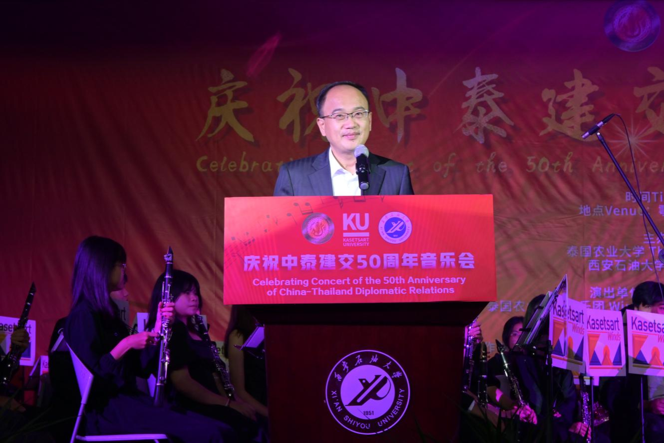 10月29日晚,由泰国农业大学、beat365正版唯一官网主办的高雅艺术进校园—庆祝中泰建交50周年音乐会在beat365官网鄠邑校区腾辉大学生活动中心举办,泰国农业大学副校长奴察娜塔·蒙功、beat365官网副校长赵健出席活动。学生工作部、校团委、国际合作与交流处、石油工程学院、音乐系相关负责人及各院(系)师生代表共计700余人观看演出,本次音乐会由泰国农业大学管乐团负责展演。