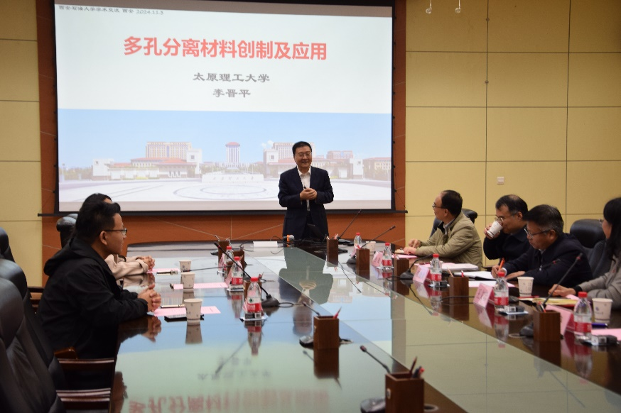 11月3日下午,中国化工学会会士、怀柔实验室山西研究院副院长李晋平教授应邀来beat365官网进行学术交流。并在雁塔校区第一会议室为beat365官网师生作题为“多孔分离材料创制及应用”的学术报告。副校长张骁勇,科研处、化学化工学院负责人出席报告会。
