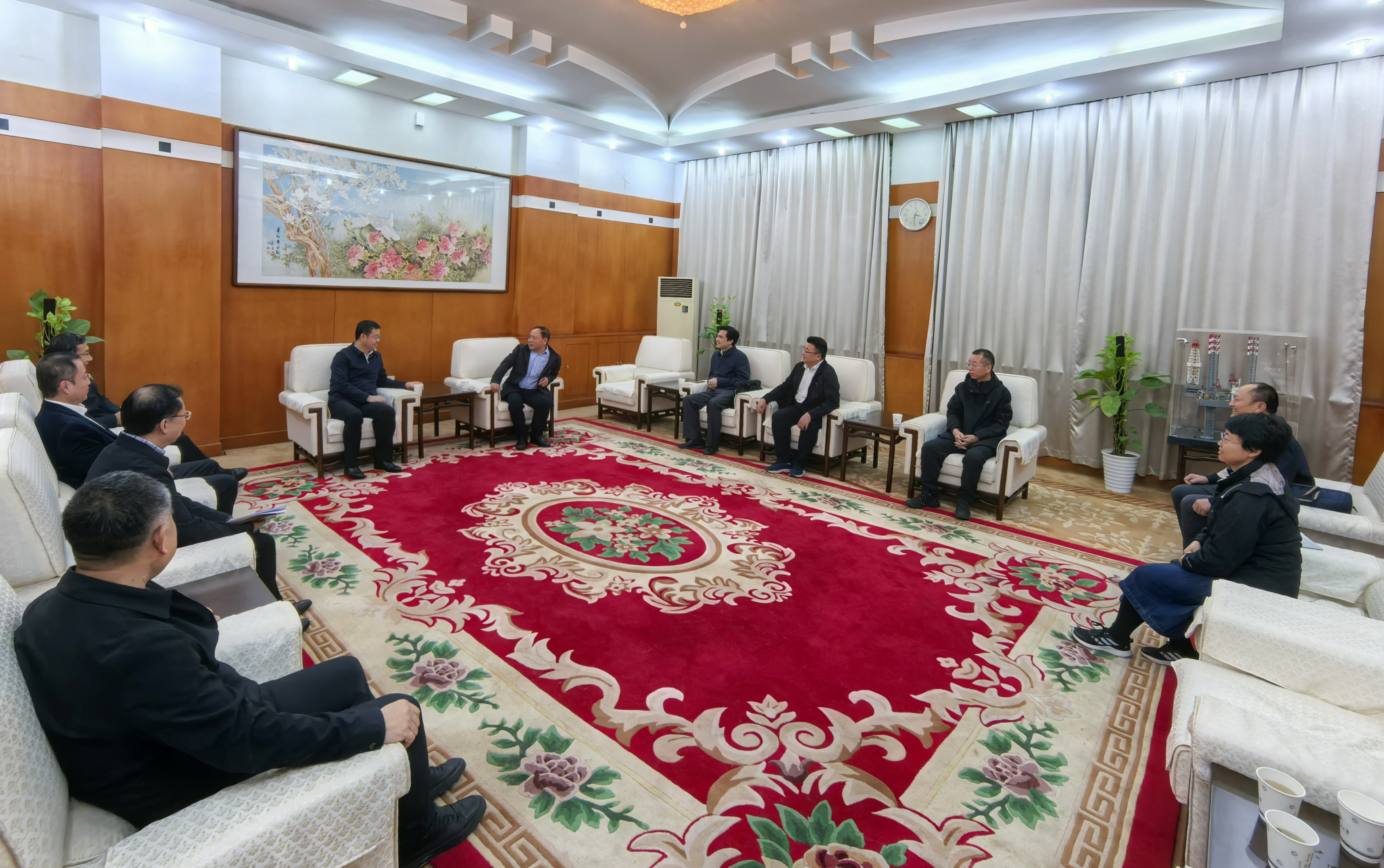 会前,校长王进富在雁塔校区会议中心贵宾室会见了孙冬胜一行,就人才培养、科学研究以及产学研合作等领域进行了工作交流。