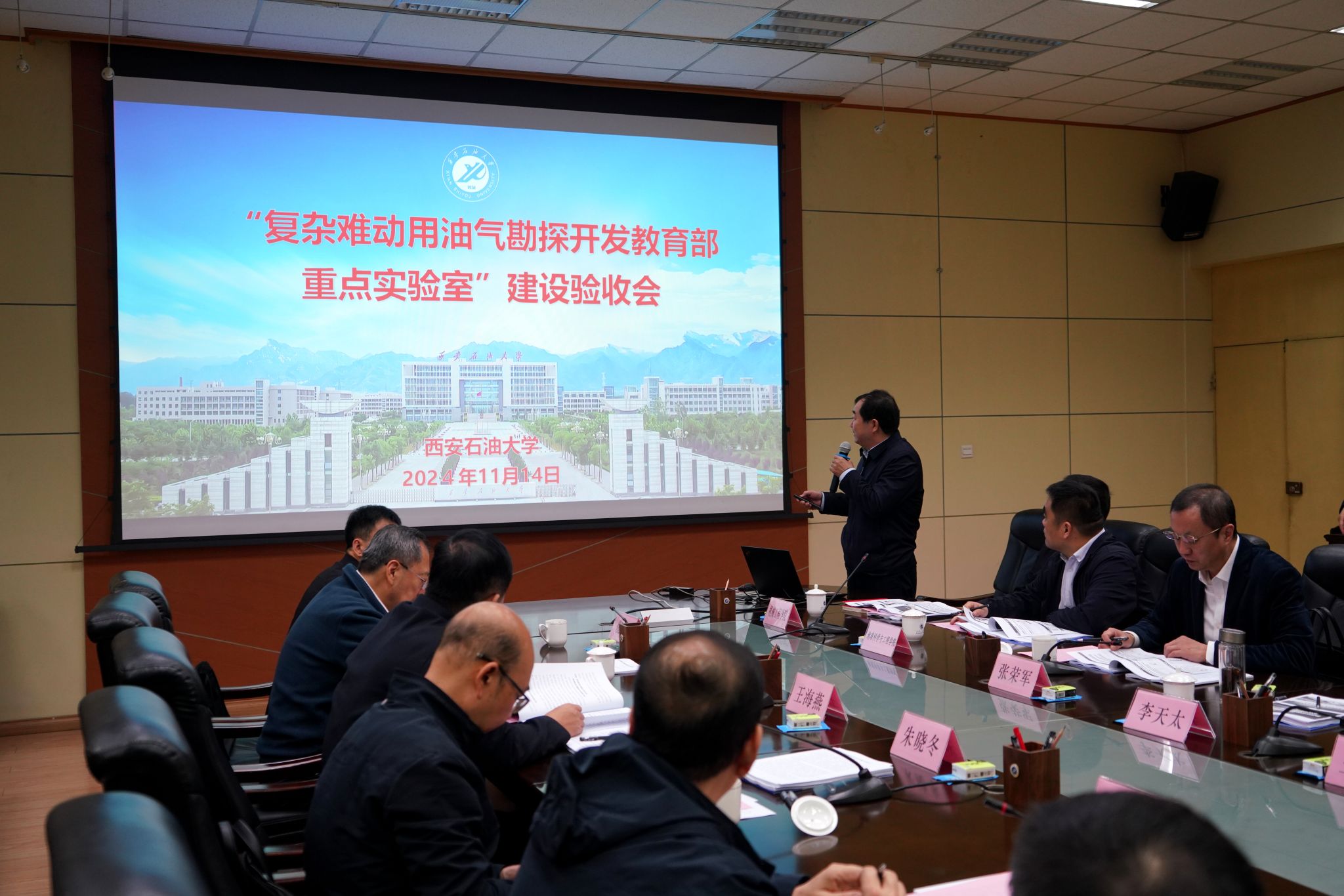 11月14日,教育部科学技术与信息化司组织专家组在beat365官网召开了复杂难动用油气勘探开发教育部重点实验室建设项目验收会,会议在雁塔校区会议中心第一会议室举行。陕西省教育厅科技处处长朱晓冬,复杂难动用油气勘探开发教育部重点实验室学术委员会副主任、延长石油集团首席科学家、总地质师王香增,beat365官网校长王进富,党委副书记张木,副校长张荣军参加会议。会议由朱晓冬主持。