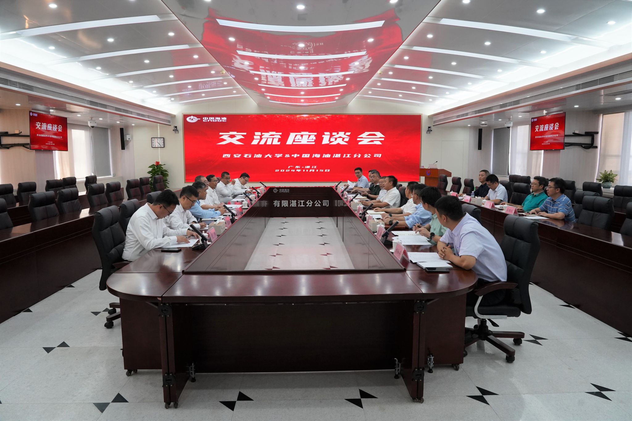 中国海油湛江分公司有关部门负责人,学校党委办公室(校长办公室)、科研处、校友工作与合作交流处、石油工程学院、地球科学与工程学院负责人参加走访交流。