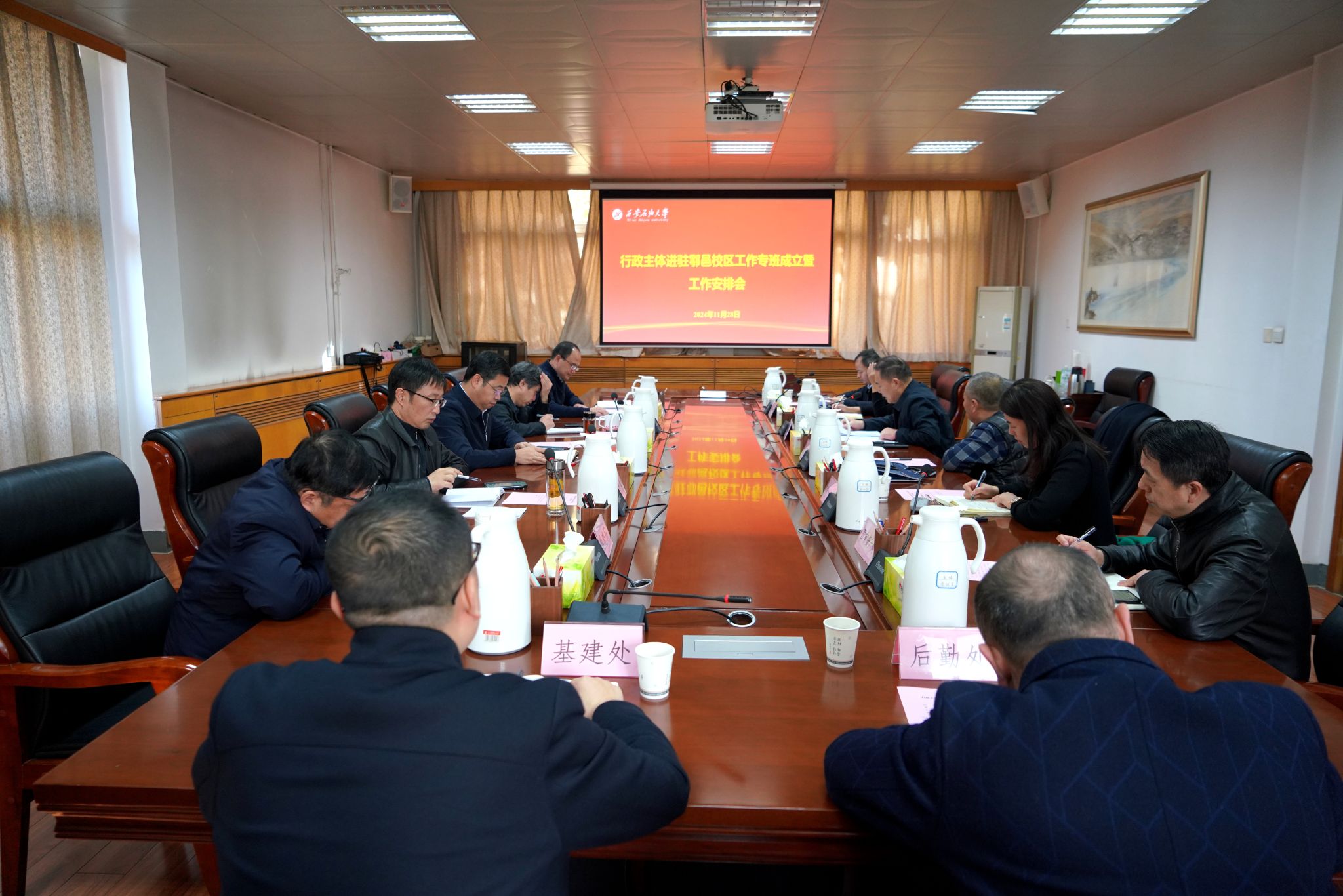 会上,发展规划处主要负责人就《行政主体进驻鄠邑校区工作方案》进行了汇报,专班办公室负责人汇报了专班组成及主要工作职责。会后,专班各成员单位围绕搬迁工作的具体实施细节进行了交流研讨。