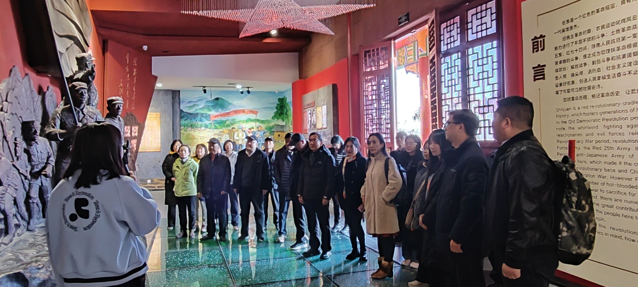 在石泉革命纪念馆,大家跟随讲解员的讲解,了解到石泉县是鄂豫陕革命根据地和川陕革命根据地的组成部分,在土地革命战争时期,红四方面军、红二十五军、红七十四师、陕南人民抗日第一军及其游击队等都曾在这里战斗过,具有光荣的革命历史,培育了一代又一代英雄豪杰。通过参观馆中陈列的历史文物、文献资料和历史图片等,了解到红军在石泉艰苦卓绝的战争风云和抗争历史,以及先烈们投身革命、血战抗日、抗美援朝等英勇事迹,深刻体会到今天幸福生活的来之不易。参观纪念馆后,大家徒步来到红军纪念碑、红军纪念广场、革命烈士陵园,再次缅怀革命先烈,接受红色教育。大家还来到石泉县中坝作坊小镇,见证乡村振兴成果。