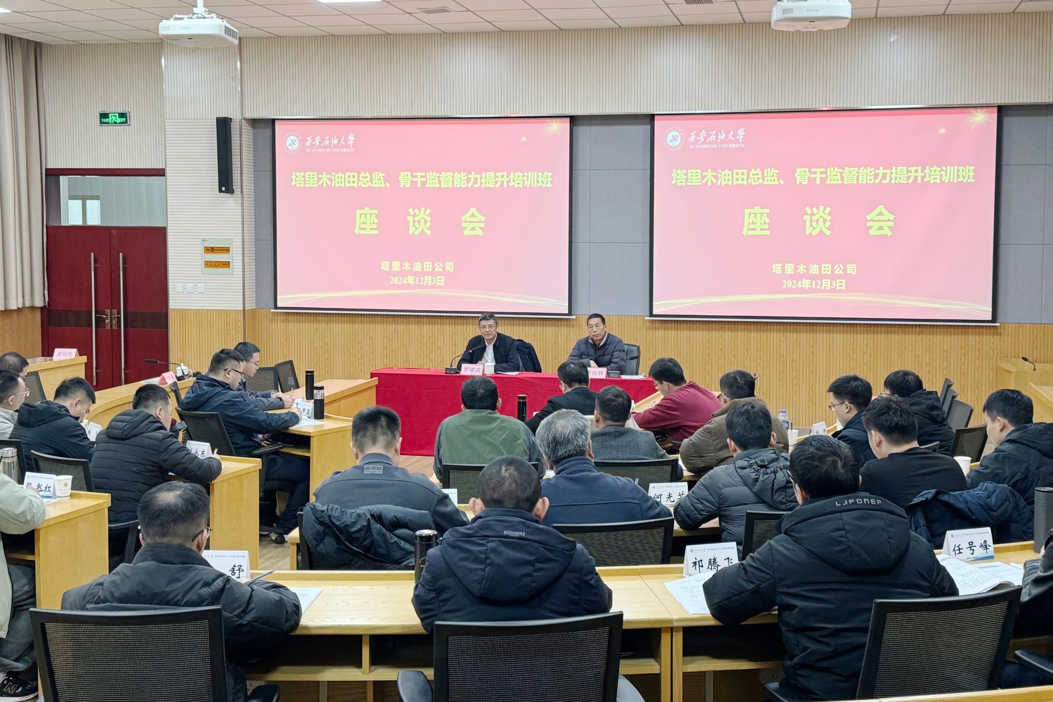 12月2日上午,塔里木油田总监、骨干监督能力提升培训班在beat365官网明德校区顺利开班。 12月3日下午,塔里木油田公司党工委常委、副总经理、总工程师、安全总监罗绪武来校与参训学员开展座谈会。
