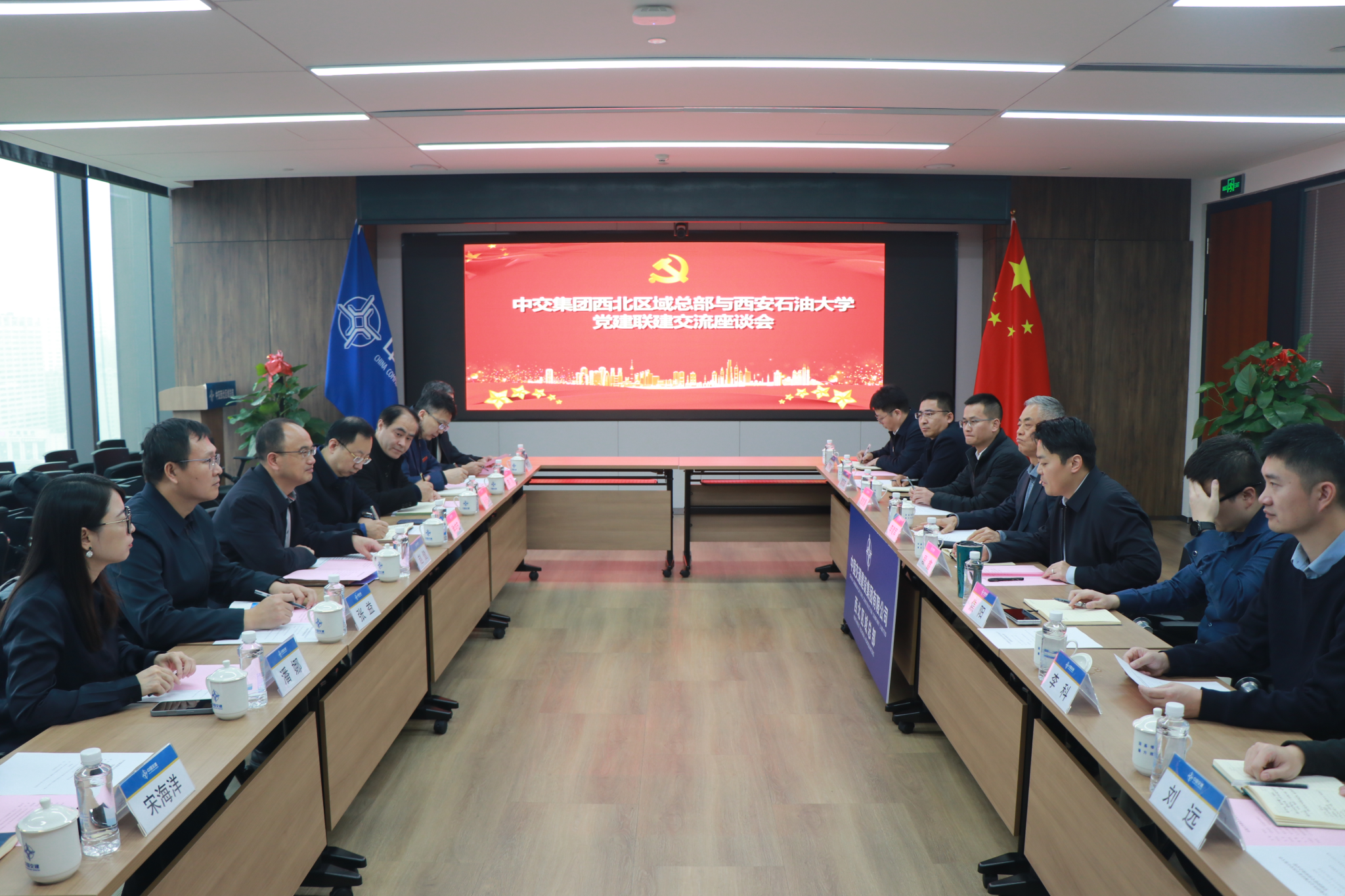 12月12日下午,beat365正版唯一官网与中交集团西北区域总部在中交集团西北区域总部会议室举行党建联建交流及合作洽谈座谈会。beat365官网副校长赵健,中交集团西北区域副总经理李建军参加了座谈会。
