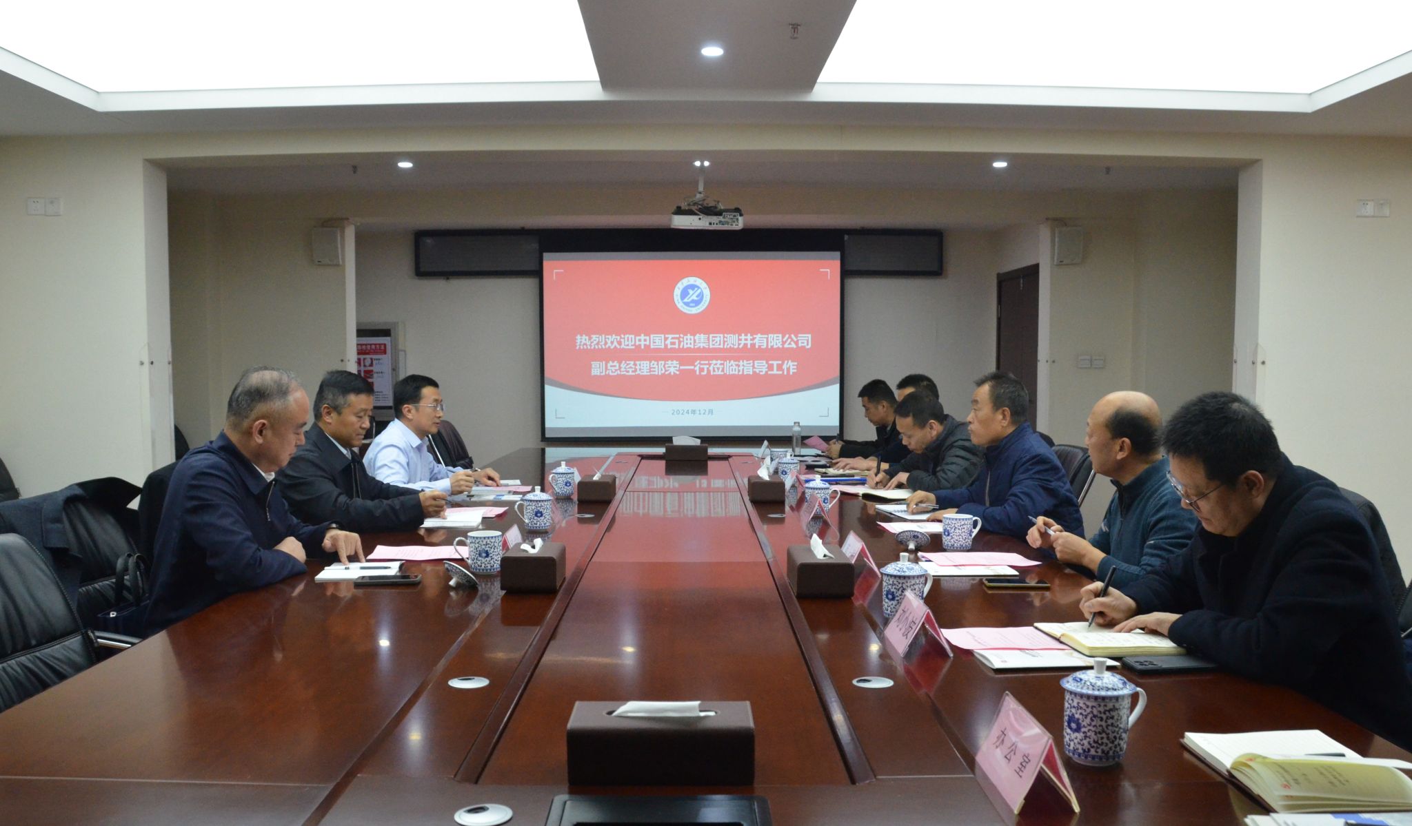 程永清对邹荣一行的到来表示热烈欢迎,诚挚感谢中石油测井公司一直以来对学校各项事业的关心与支持。他谈到学校近年来通过追溯发源、挖掘史料,展现了老一辈无产阶级亲切关怀、深植红色基因的光荣史实。他回顾了双方在科学研究、人才培养、交流合作等方面取得的丰硕成绩,特别回顾了公司在学校举办的2023年办公室系统业务提升培训班、2021年仪修工程师岗位示范培训班都合作圆满。同时,他表示双方比邻,有着共同的石油历史、深厚的合作感情,新时期双方要围绕国家“卓越工程师”计划,共谋划同发展,共同打造建设行业领域新高地、共建实习基地、共享师资与资源。