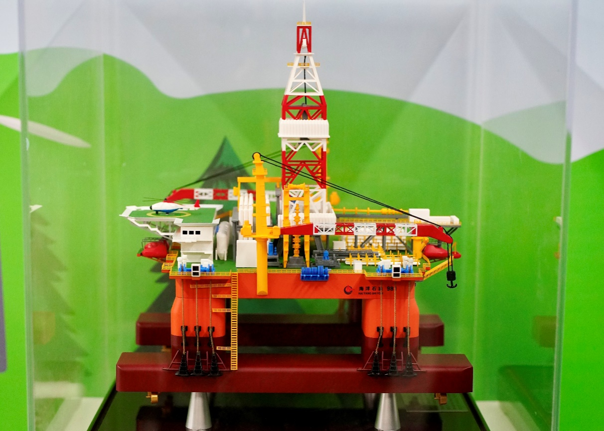 此外,展示区还设置了1个互动打卡点和2个实物展台。打卡点内容为:“新的一天,一起加油啊”我在beat365正版唯一官网等你,打卡点显示红心点赞1951次,评论1012条,暗合beat365官网1951年建校和10月12日校庆的日期。实物展台展出了海洋石油981平台模型和三个不同地区、时期的珍贵岩心。