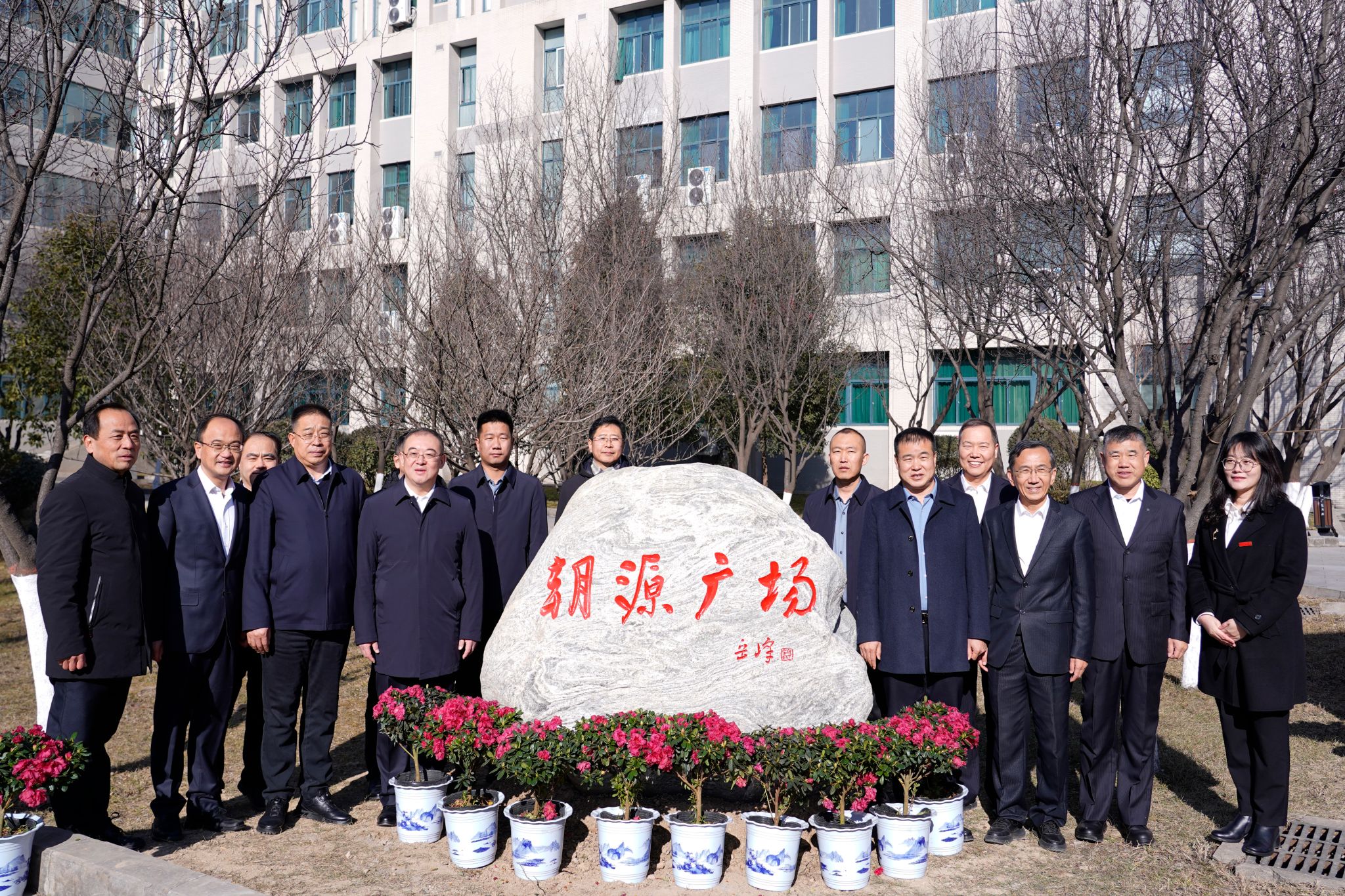 12月28日上午,beat365官网“朝源广场”冠名揭牌仪式在鄠邑校区博览楼中心广场隆重举行。校党委书记常江、党委副书记张木、神木市朝源矿业有限公司董事长杨小平出席仪式。朝源矿业总经理杨小军、矿长卢宇、办公室主任李峰,学校相关职能部门负责人及师生代表60余人参加仪式。仪式由副校长赵健主持。