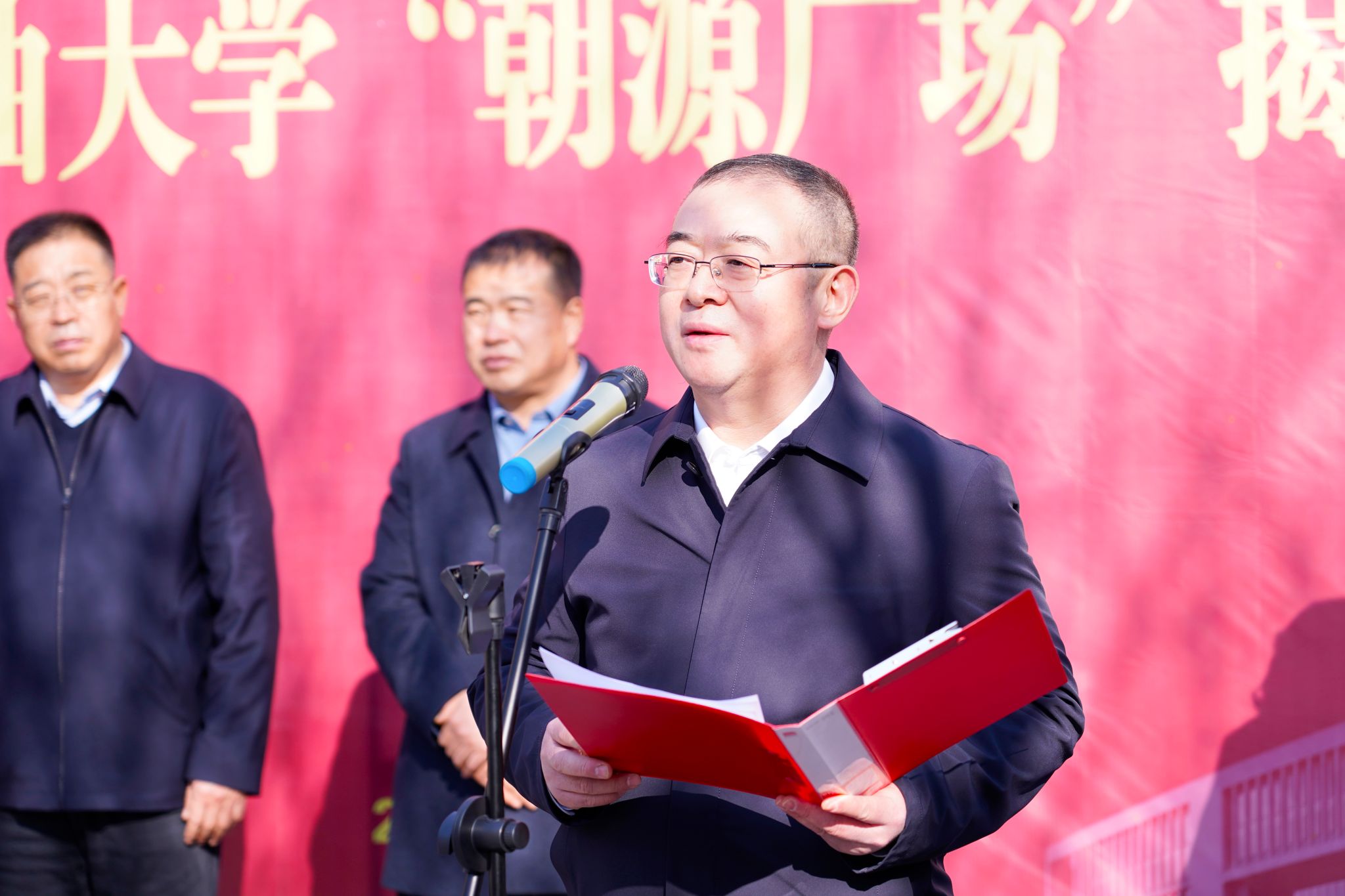 张木详细介绍了“朝源广场”冠名的背景、意义。为铭记朝源矿业捐资助学义举,学校决定将鄠邑校区博览楼中心广场冠名为“朝源广场”,刻石留念。
