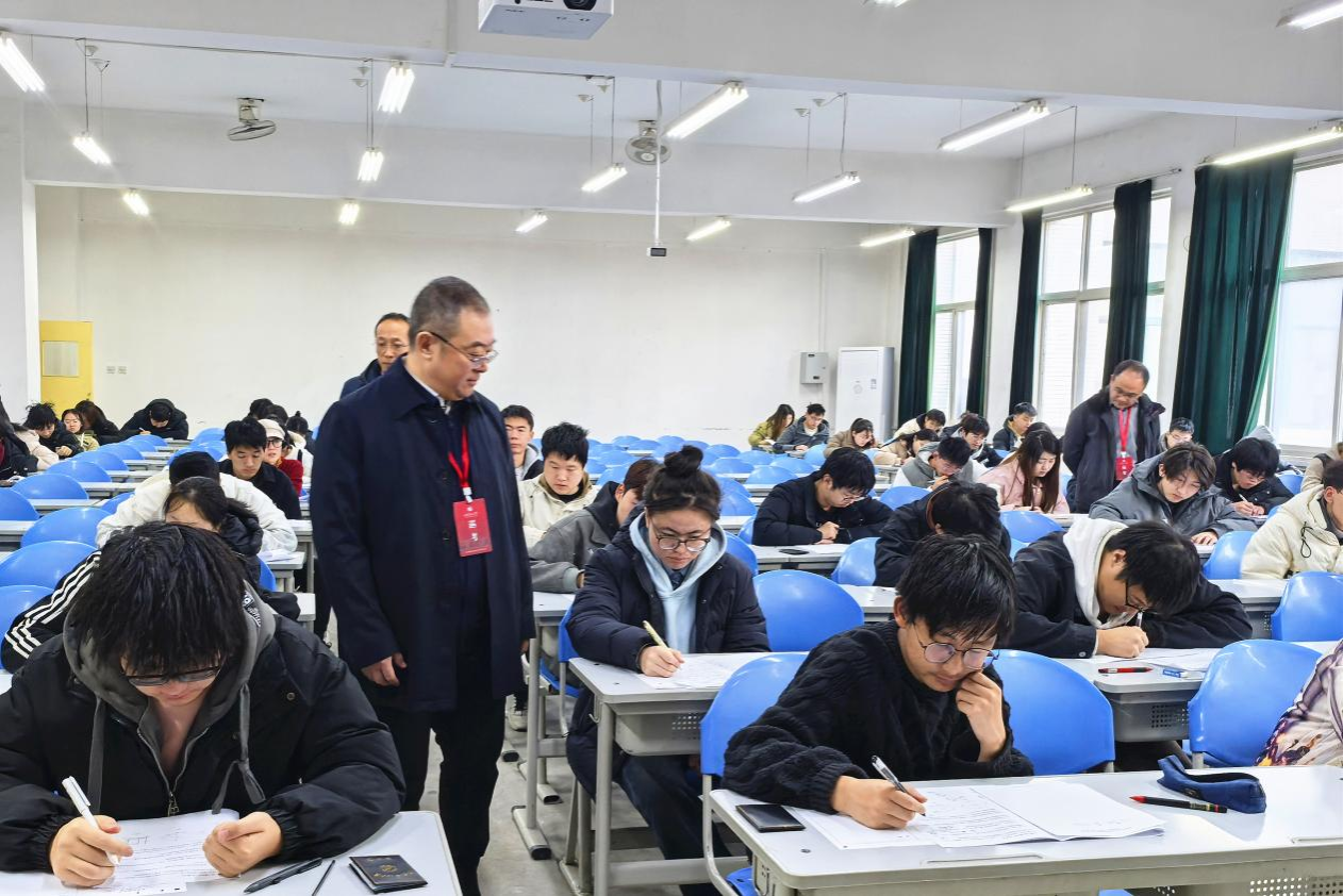 根据学校教学工作安排,2025年1月6日至10日为beat365官网期末考试周。为进一步加强考风考纪建设,营造公平公正的考试环境,1月7日上午,校党委书记常江等校领导在党委办公室(校长办公室)、教务处、学生工作部(处)等相关部门负责人陪同下,对考场考务和监考巡考等工作进行巡查。