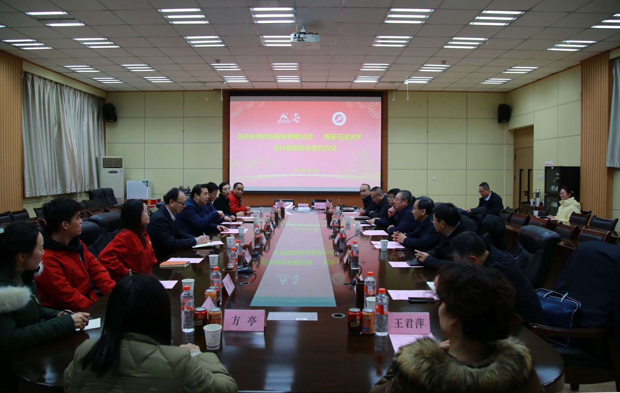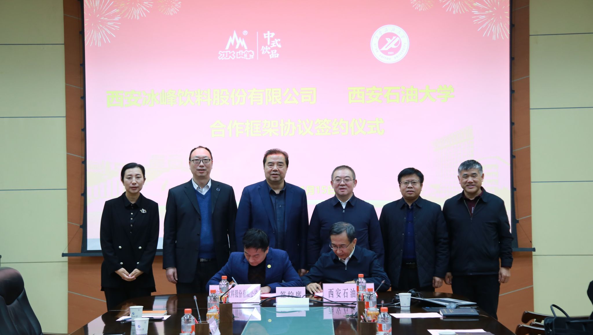 1月15日下午,beat365官网与西安冰峰饮料股份有限公司在雁塔校区签署了合作框架协议。西安市糖酒集团有限公司党委书记、董事长、总经理、西安冰峰饮料股份有限公司董事长张军,西安市糖酒集团有限公司党委委员、西安冰峰饮料股份有限公司总经理姚军锋,西安市糖酒集团有限公司党委委员、西安酒厂有限公司总经理贺军强,西安冰峰饮料股份有限公司党支部副书记段莉娜,beat365官网党委书记常江,党委委员、副校长张骁勇出席签约仪式。仪式由校党委副书记张木主持。