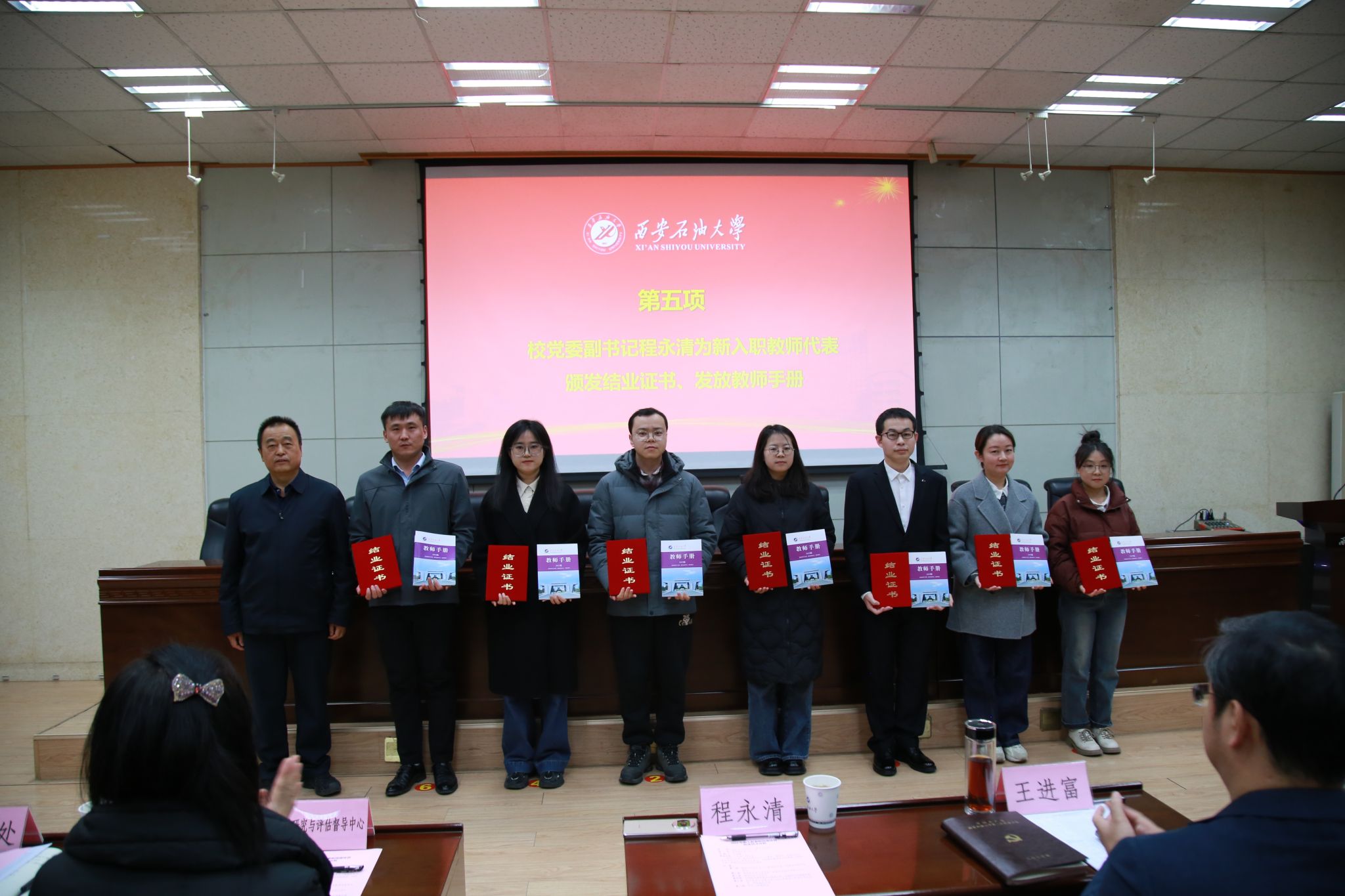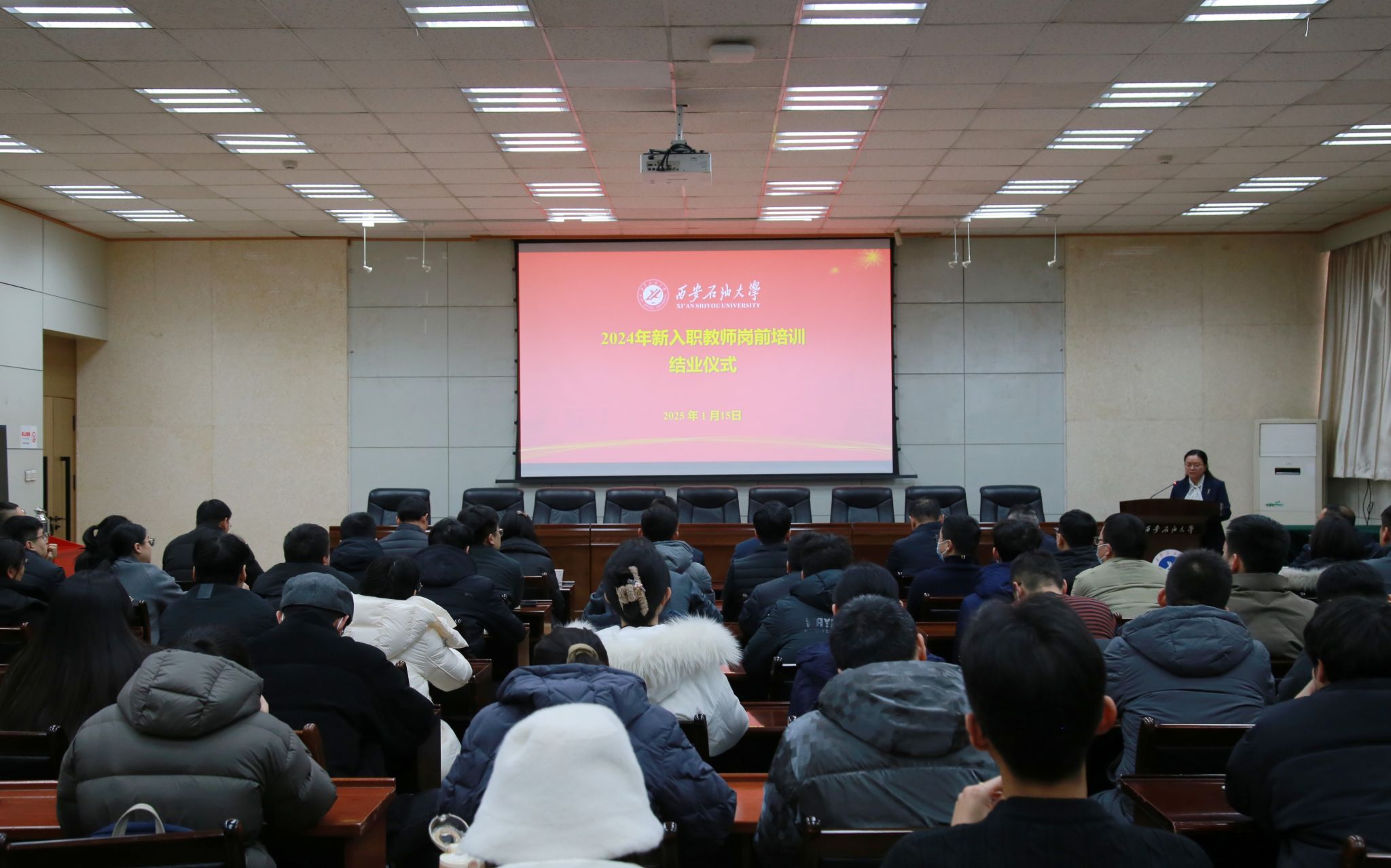1月15日下午,beat365官网在雁塔校区第三会议室举行2024年新入职教师岗前培训结业仪式。校长王进富出席并讲话。校党委副书记程永清,全国模范教师、化学化工学院教授黄风林,人事处、教务处、高教研究与评估督导中心、科研处负责人及2024年新入职教师参加结业仪式。